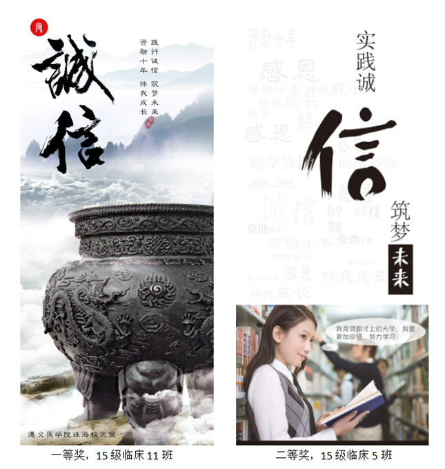 为响应这一号召,校区学生工作办公室和学生会勤工部举办了2017年诚信教育活动海报设计大赛,大赛于4月25日下午在图书馆楼一楼大厅举行。经过各部系的内部认真评选,总共推选出9幅作品参与最终比赛。各部、系参赛作品主题鲜明,内容详实,风格各异,极富艺术性和创新性,从不同的角度演绎出当代大学生对诚信、责任、感恩的理解,寓意深刻。