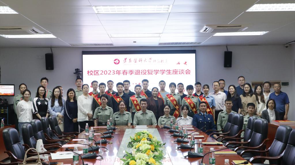 4月11日晚,校区在综合楼六楼会议室召开2023年春季退役复学学生座谈会。校区党委副书记向国惠出席,学工办、教学办、后勤与设备办负责人、相关部系书记以及辅导员, 2023年春季退役复学学生、全体在校退役学生参加了座谈会,会议由学工办主任曹红主持。
