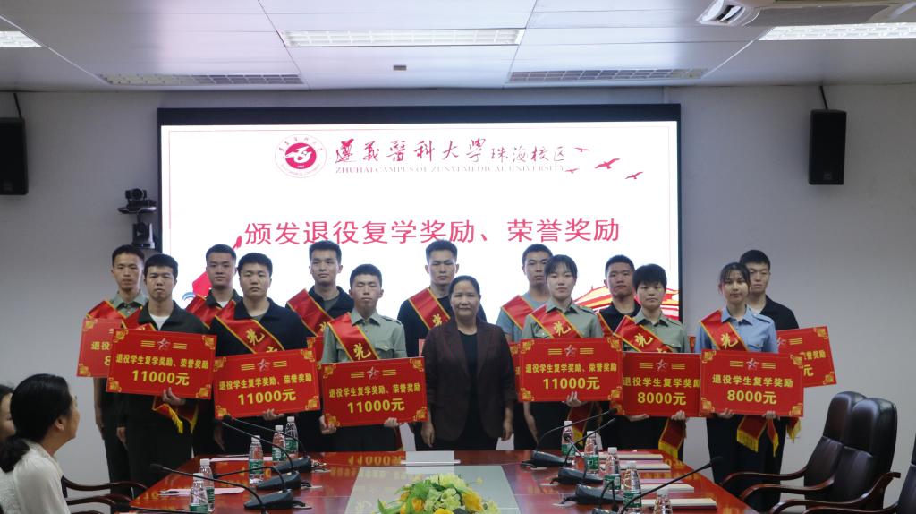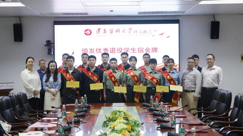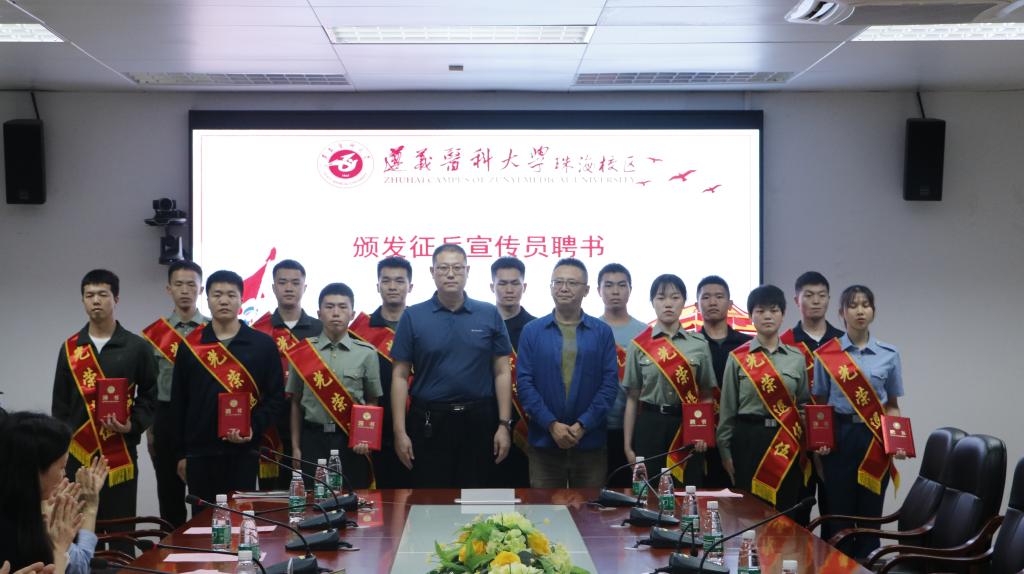随后,曹红主任宣读了《关于聘任付胜科等13名退役复学同学为遵义医科大学珠海校区大学生征兵宣传员的决定》,与会老师分别为退役复学学生颁发了征兵宣传员聘书、优秀退役学生宿舍牌。