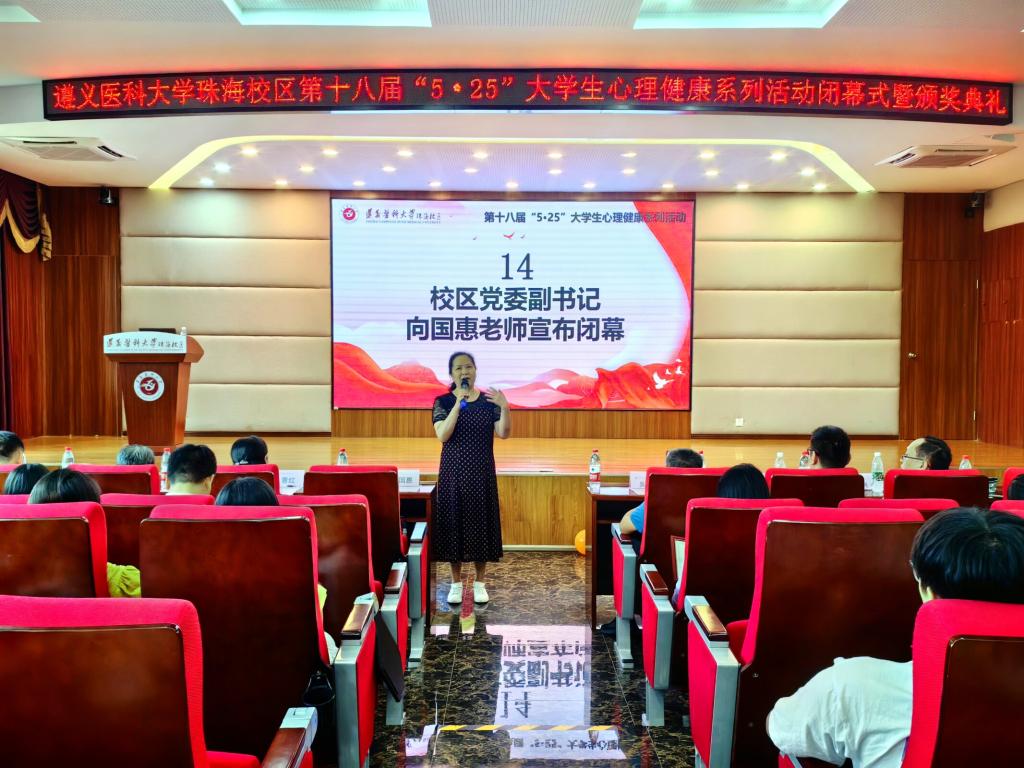 闭幕式上,播放了本次“5·25”大学生心理健康系列活动的视频,回顾了本届活动的精彩瞬间。学生工作办公室主任曹红为闭幕式致辞,强调了心理健康素质对学生成长的重要意义。随后,对在本届活动中表现突出的个人和集体进行了表彰,奖项包括优秀作品、优秀指导教师、优秀班级、优秀工作人员、优秀心理委员、优秀朋辈辅导员以及优秀组织奖等。最后,向国惠副书记宣布本次系列活动圆满结束,并倡议大家将“吾爱吾”的理念践行于日常生活。