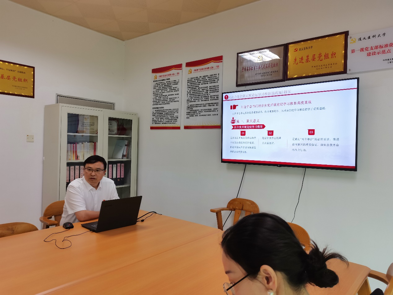 为深入学习领会习近平总书记关于党的纪律重要论述,扎实开展党纪学习教育,2024年7月9日上午,在图书馆三楼支部党员活动室,珠海校区党委委员、纪委书记陈昆涛为机关第三党支部全体党员讲党纪教育专题党课。