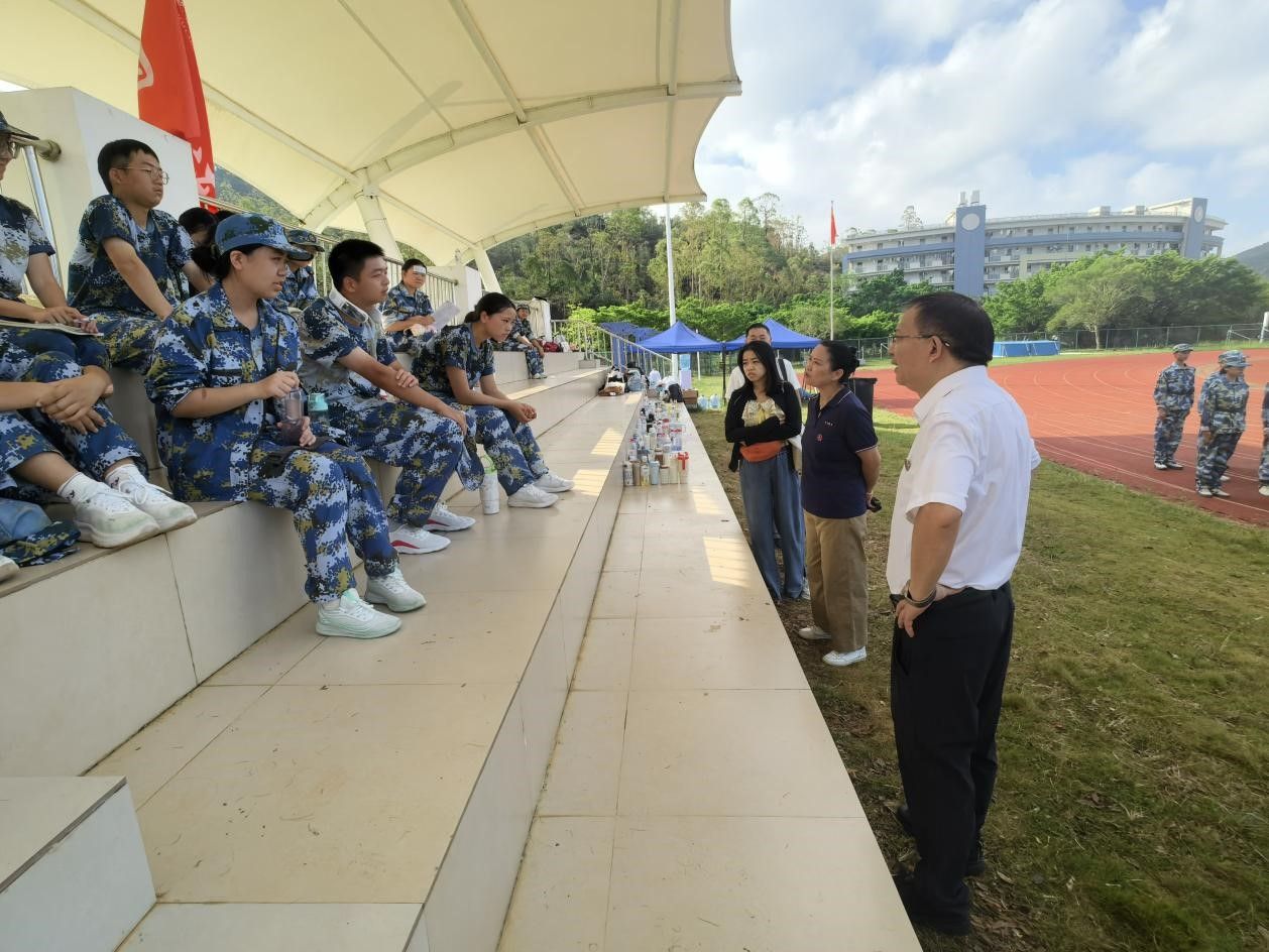 10月17日上午,学校党委副书记、珠海校区党委书记王子正,学校党委委员、珠海校区党委副书记李荣远,珠海校区党委委员、纪委书记陈昆涛,珠海校区党委委员、管委会副主任秦伟,向国惠同志一行深入军训场地,亲切慰问正在参加军训的2025级新生、承训教官及现场工作人员。校区党政办公室、学生工作办公室相关负责人陪同参加慰问。