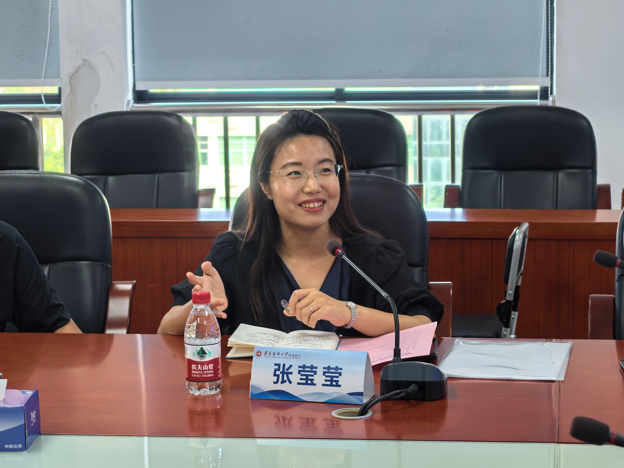 随后,深圳德臻医院书记张莹莹与院长潘奇详细介绍了深圳德臻医院的办院宗旨、科室设置、医疗技术水平、人才需求等。张莹莹特别提出,医院当前在医学专业人才招聘、实习实践基地建设,以及残疾人群体、老年群体医疗康复专项人才培养方面存在迫切需求,期待与遵义医科大学珠海校区开展深度合作,既为医院输送更多兼具理论素养与实践能力的优秀人才,也为高校学子提供高质量实践锻炼平台与就业机会,实现校企双向共赢。