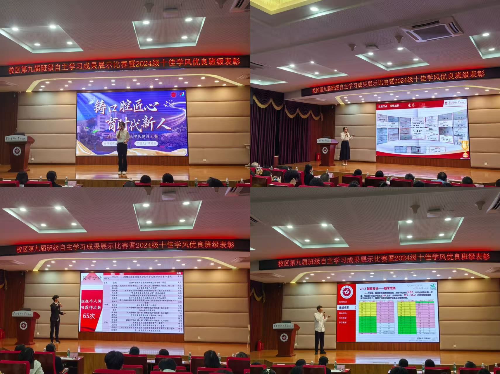 作为校区学风建设的标志性品牌活动,该比赛已连续成功举办九届。活动面向新生年级全面开展,要求全体新生班级全员参与,经过为期一年的系统培育与学风建设,再通过初赛、复赛的层层筛选,最终进入成果展示评比环节。2024级全体班级自入校以来,便以自主学习班会为起点,量身定制专属班级学风建设计划,通过多元务实举措推进学风建设,历经多轮比拼,最终10支优秀班级脱颖而出,成功晋级决赛,集中展示自主学习的丰硕成果。