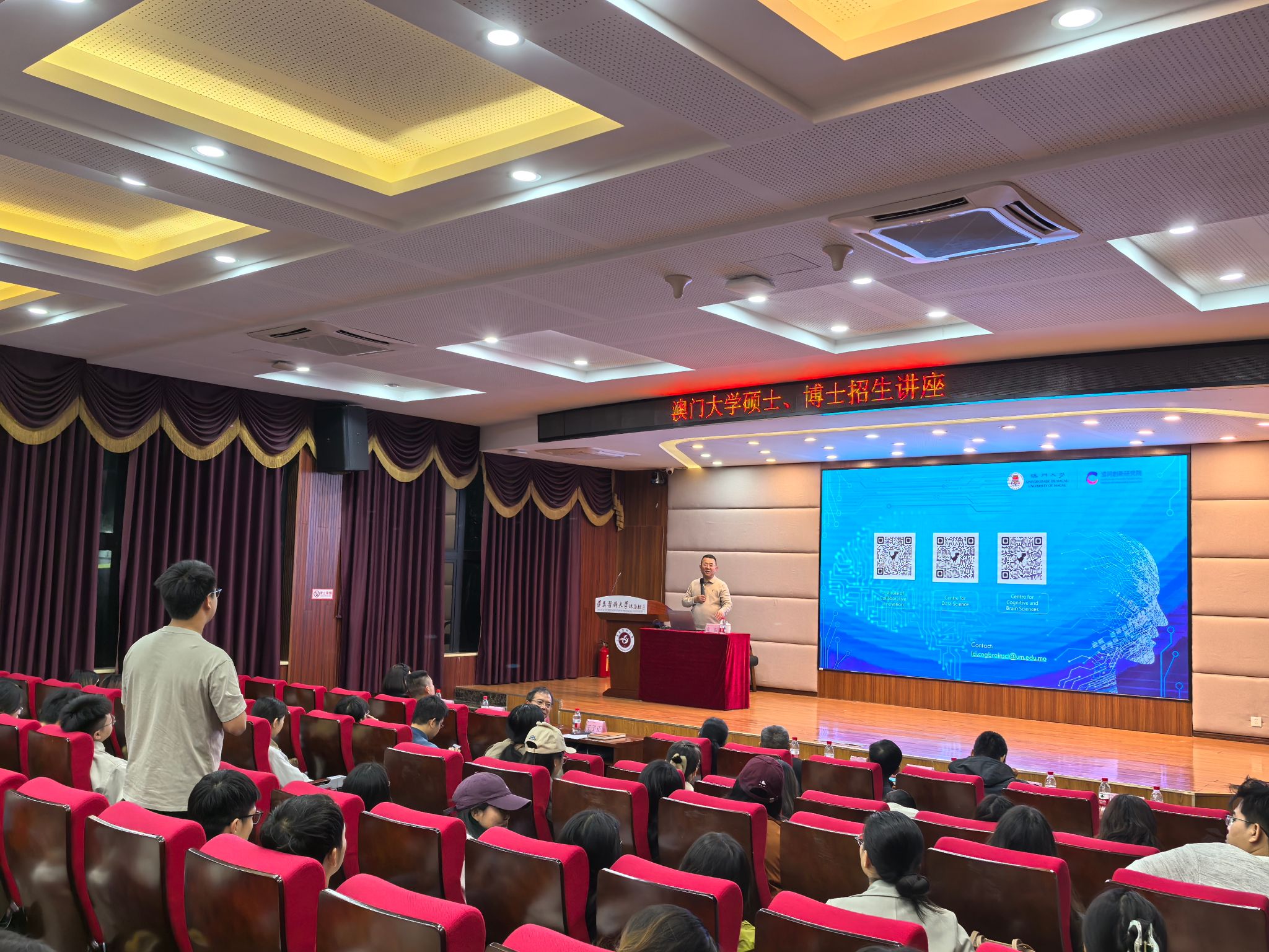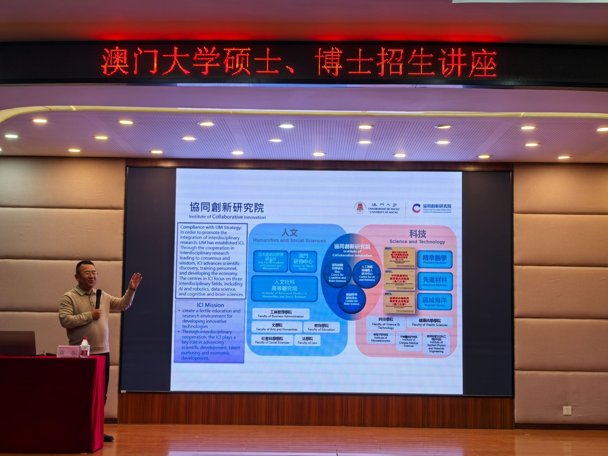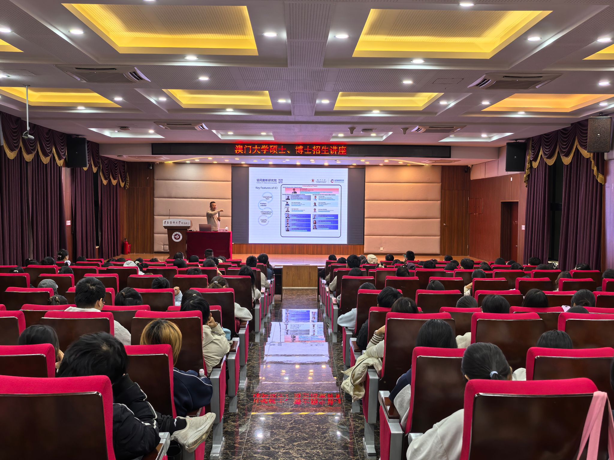 讲座中,袁振教授结合自身学术经历与澳门大学招生政策,深入浅出地解读了硕士、博士招生的核心要求、申请流程与培养特色,并从学术规划、科研能力提升、申请材料准备等多个维度分享了宝贵经验。