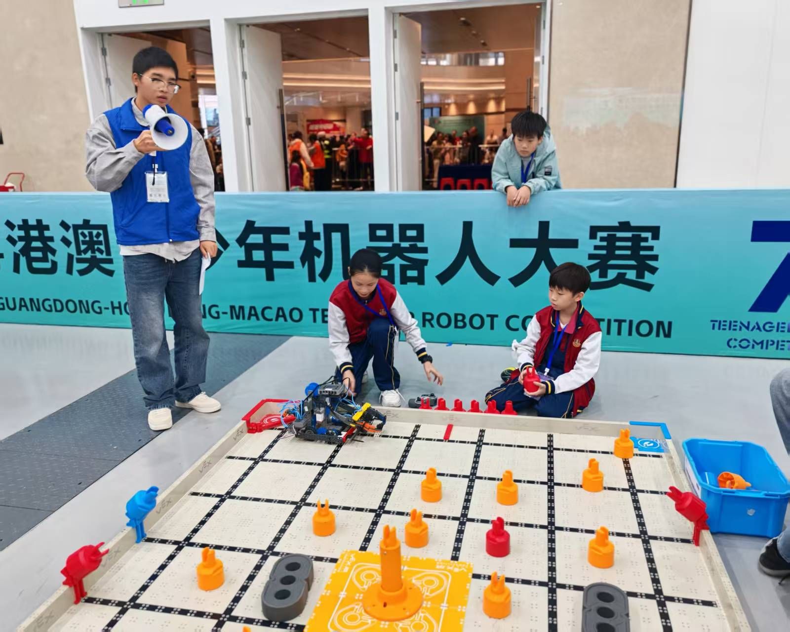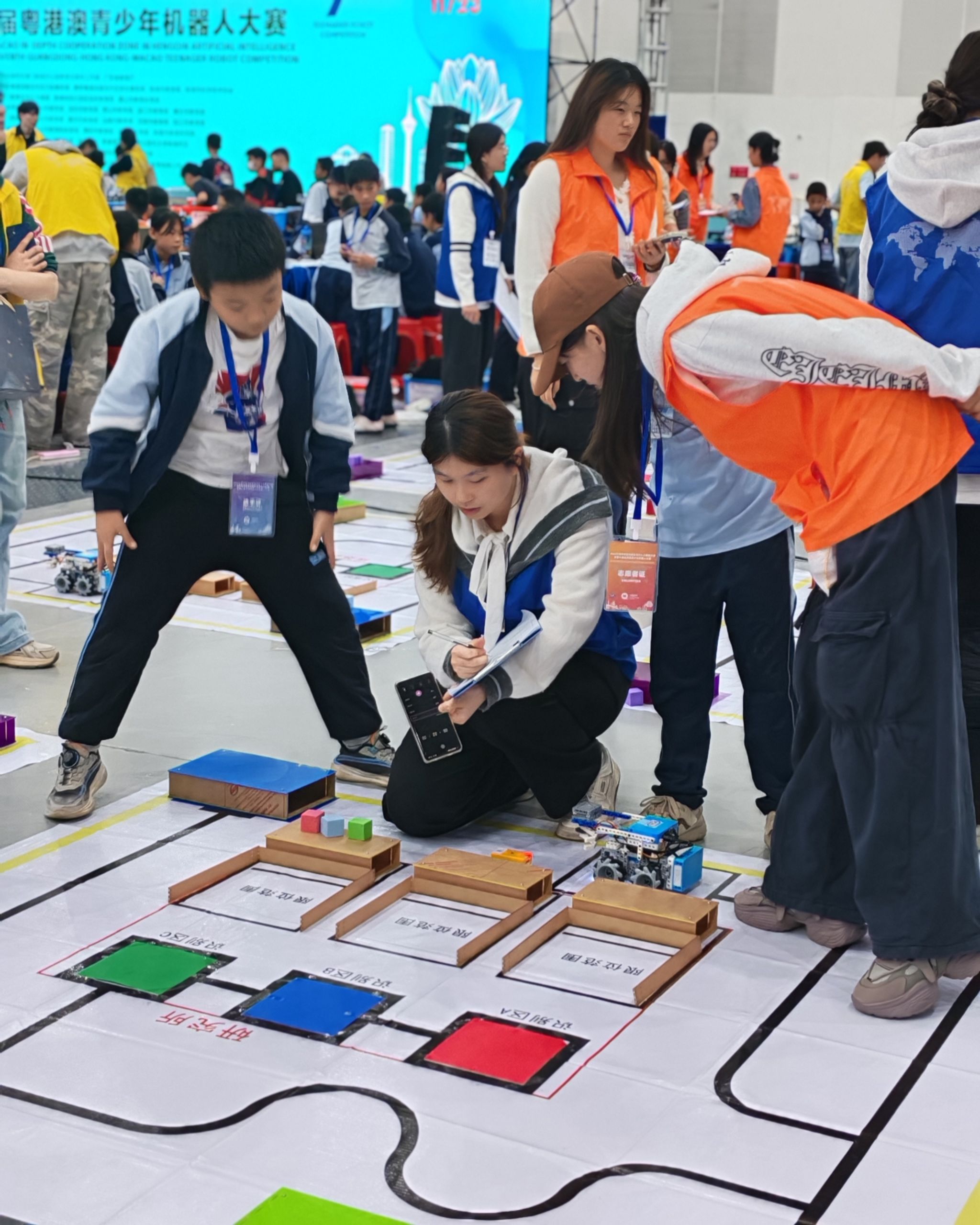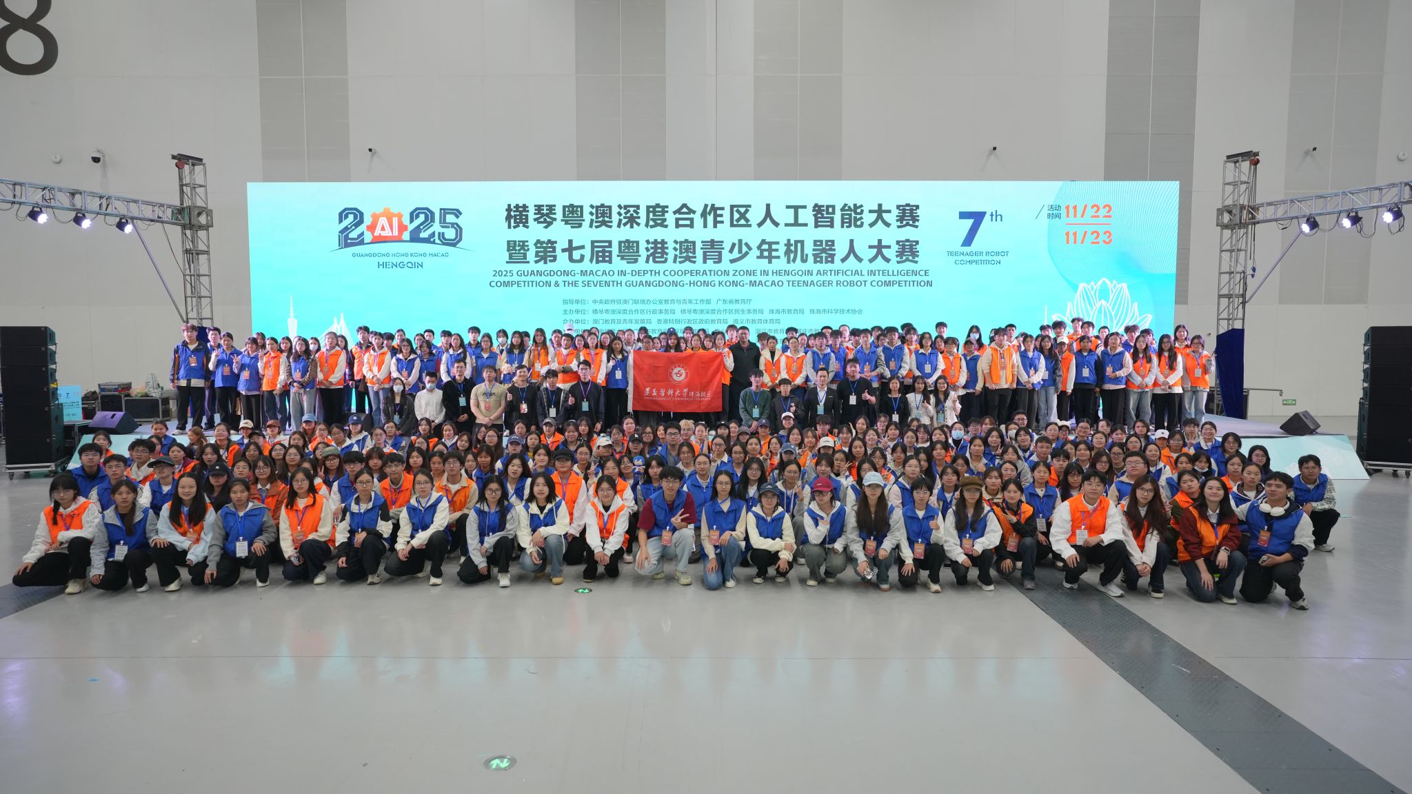 2025年11月22日-23日,由中央政府驻澳门联络办公室教育与青年工作部、广东省教育厅等单位指导,横琴粤澳深度合作区行政事务局、民生事务局、珠海市教育局、珠海市科学技术协会联合主办的2025年横琴粤澳深度合作区人工智能大赛暨第七届粤港澳青少年机器人大赛在珠海国际会展中心隆重开幕。本届赛事规模创历史新高,吸引来自全球6个国家和地区近4万人报名,覆盖中国内地26个城市、近千所学校,其中港澳地区参赛人数超过700人。为保障大赛高效有序进行,遵义医科大学珠海校区精心选拔350名志愿者,在赛前接受了礼仪规范、沟通技巧及突发事件应对等系统培训,全面投入赛事服务。