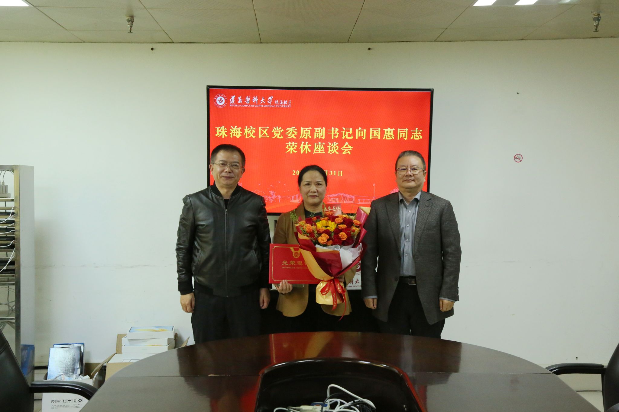 12月31日上午,校区在行政楼四楼会议室举办向国惠同志荣休座谈会。学校党委副书记、校区党委书记王子正出席并讲话。校区领导班子成员及相关部门负责人参加。会议由学校党委常委、副校长、校区党委副书记、管委会主任李均主持。