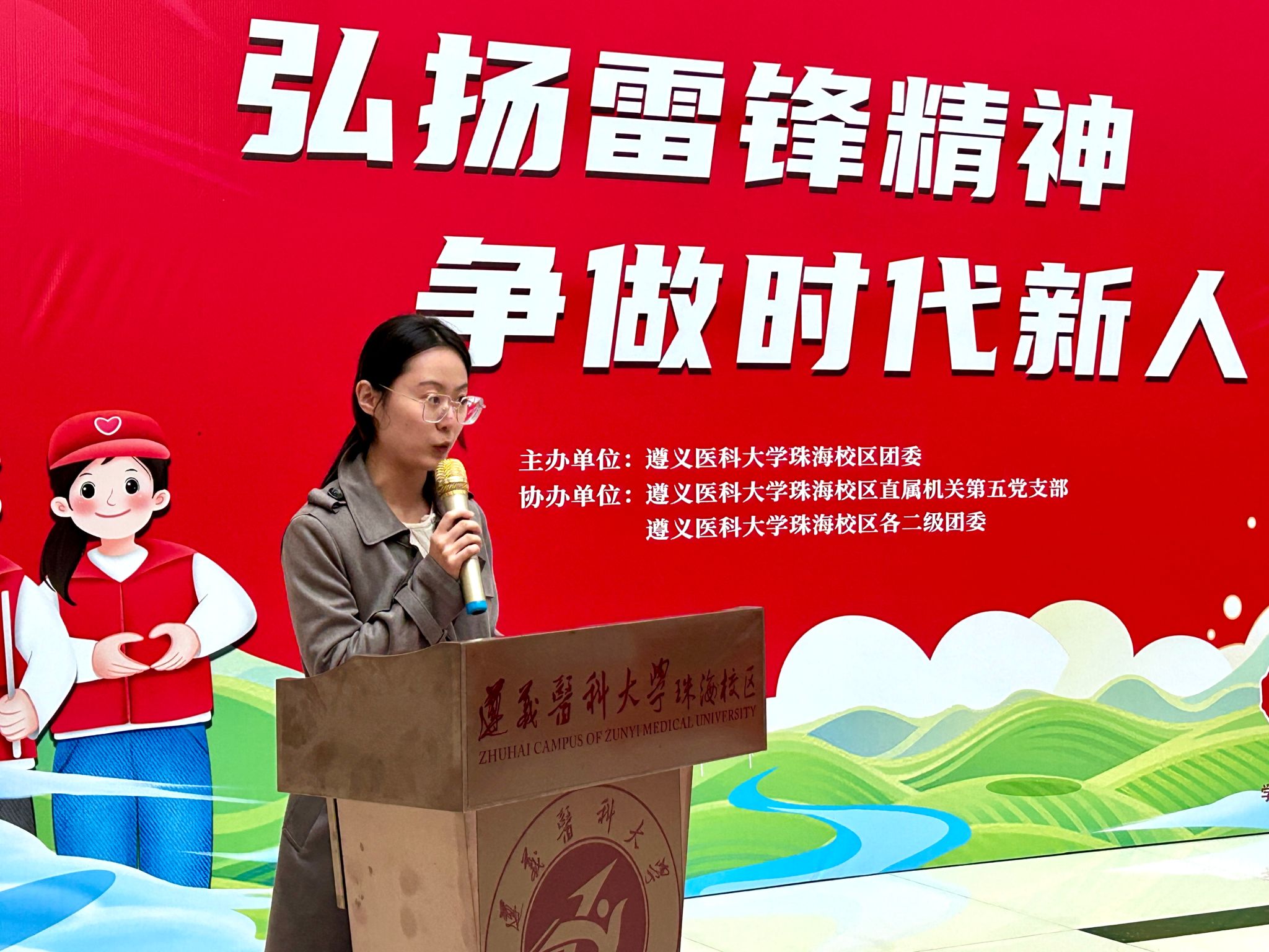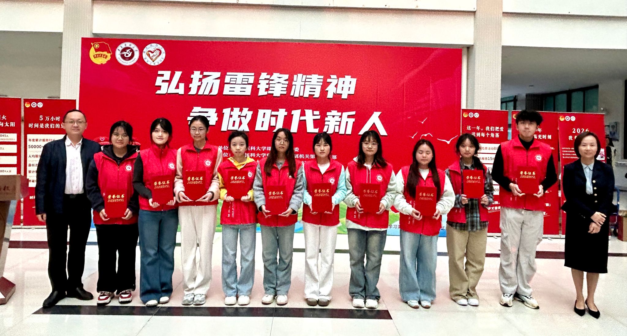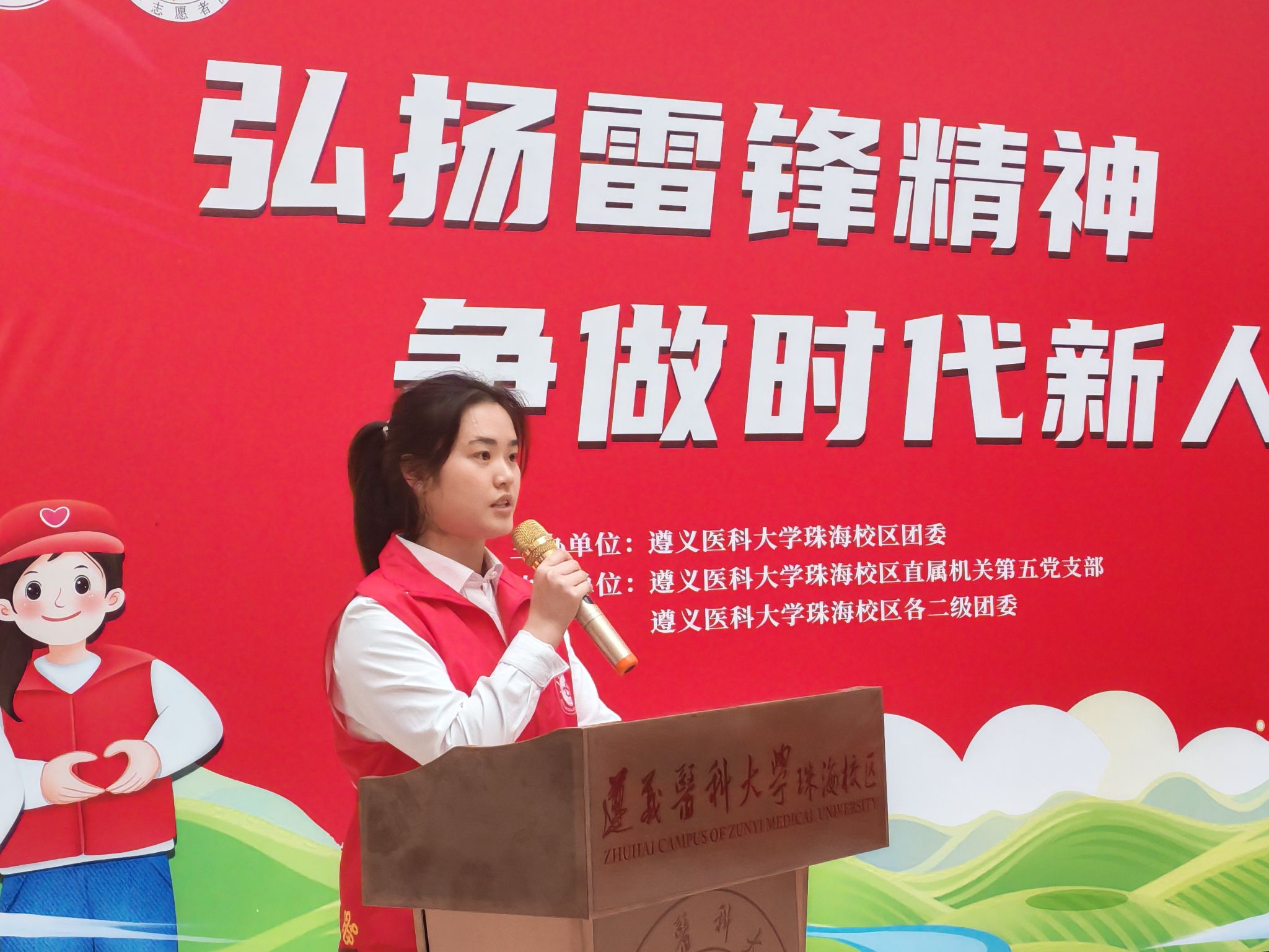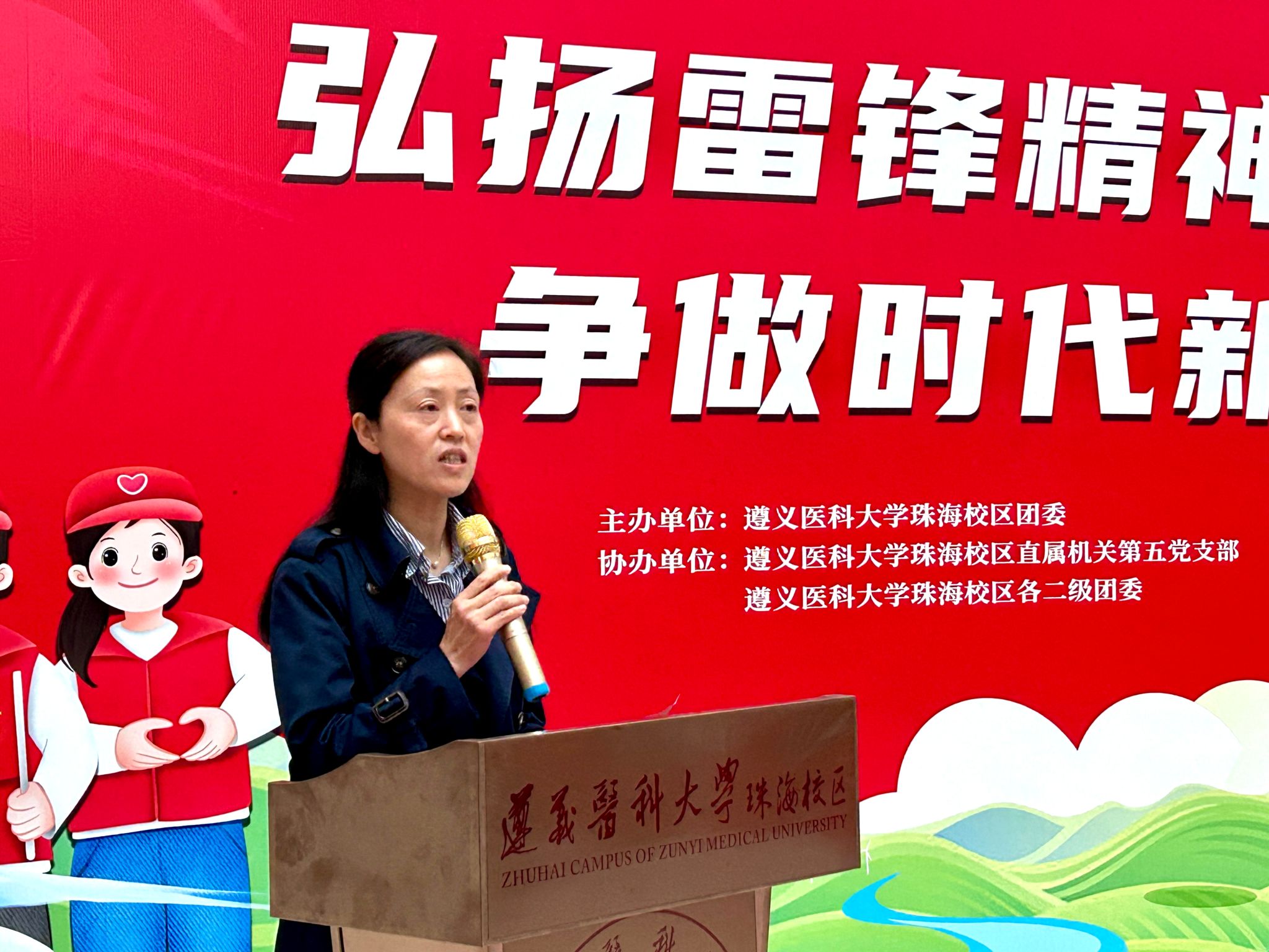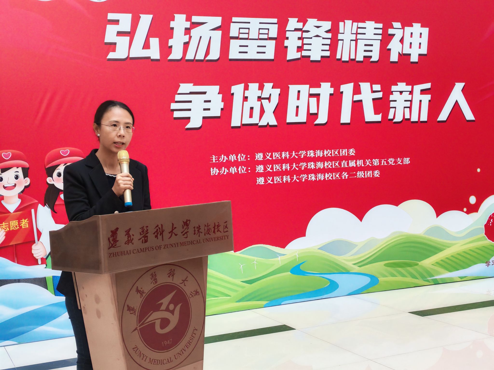 2026年3月5日,是第63个“学雷锋纪念日”,也是第27个“中国青年志愿者服务日”。为深入学习贯彻习近平新时代中国特色社会主义思想,大力弘扬雷锋精神,积极培育和践行社会主义核心价值观,遵义医科大学珠海校区志愿服务队风采展暨2026年雷锋月系列活动启动仪式在综合楼一楼大厅举行。校区党委副书记曹红出席活动,各院部系党委(党总支)负责人、校区团委及院部系团委相关教师,以及学生志愿者代表共同参加。