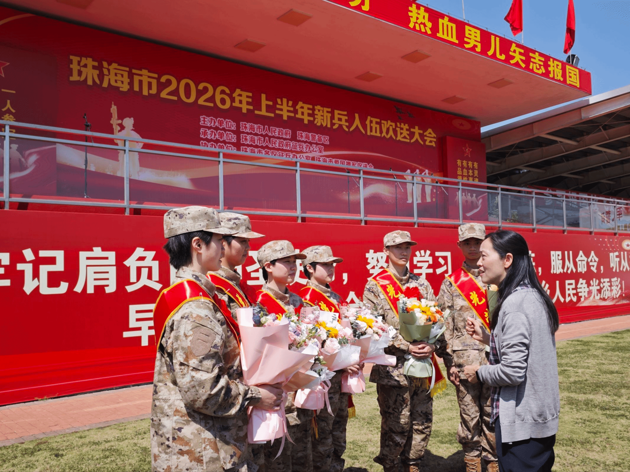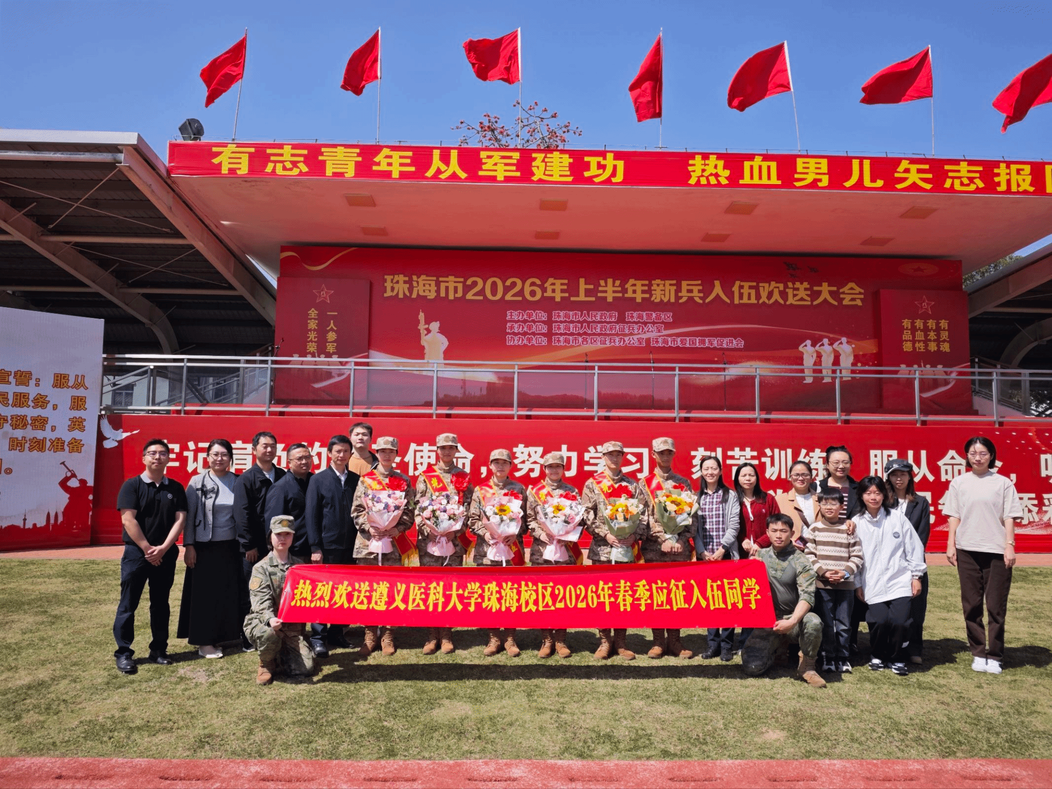 3月14日上午,遵义医科大学珠海校区赴珠海市国防教育基地,热烈欢送校区2026年春季应征入伍学生。校区党委副书记曹红出席并讲话,校区征兵工作领导小组办公室工作人员、应征入伍同学所在院部系负责人及辅导员、退伍复学学生代表和家长代表参加欢送。