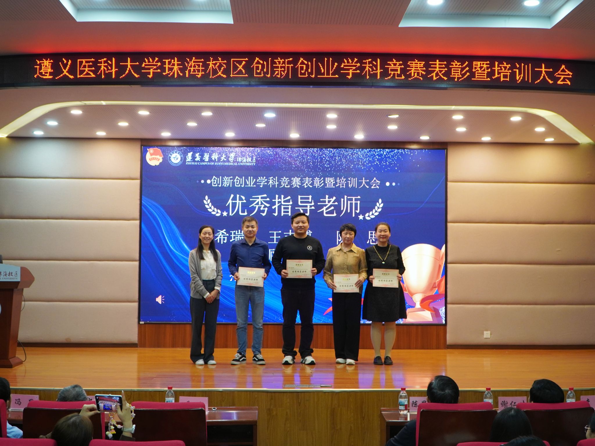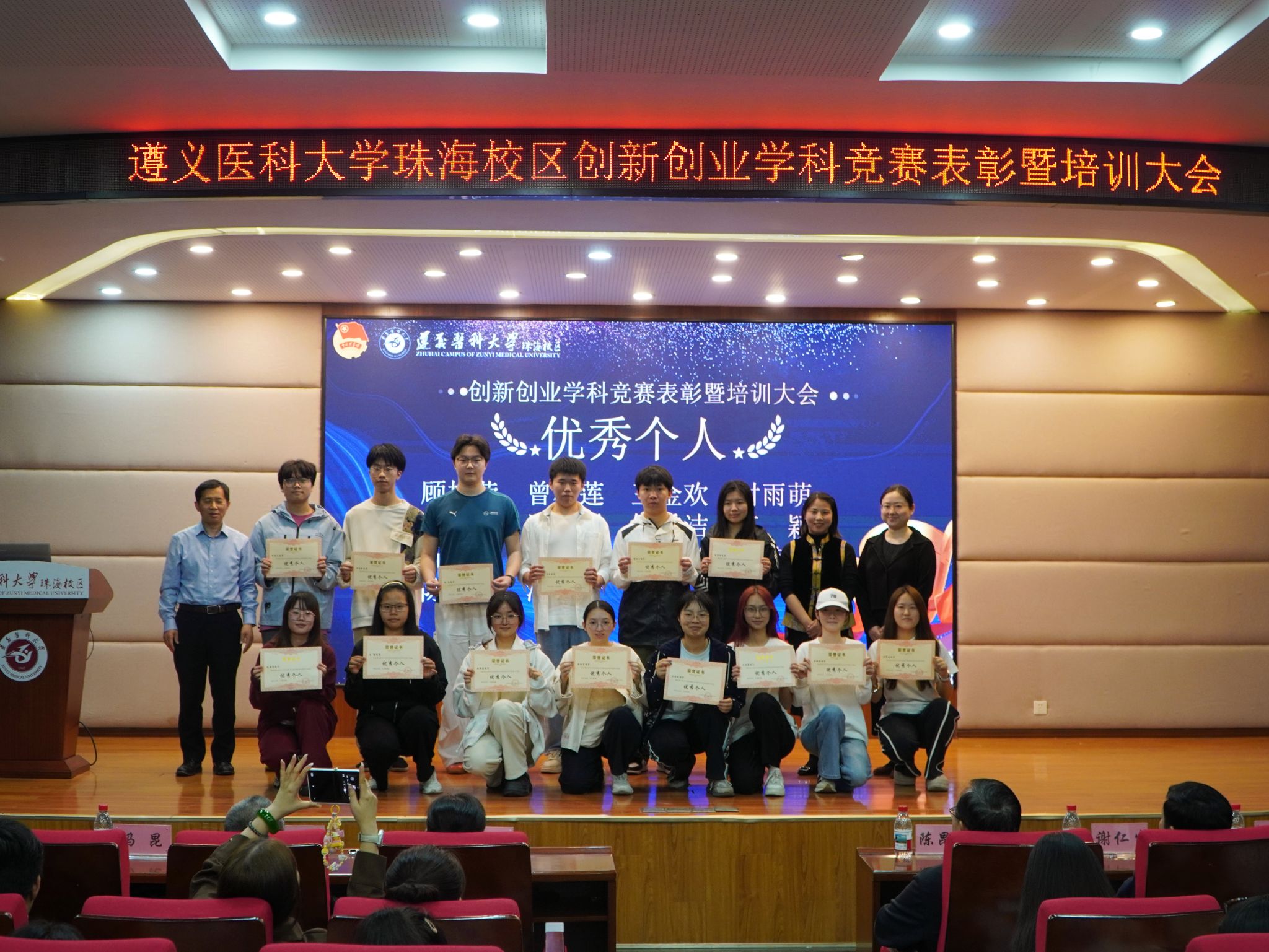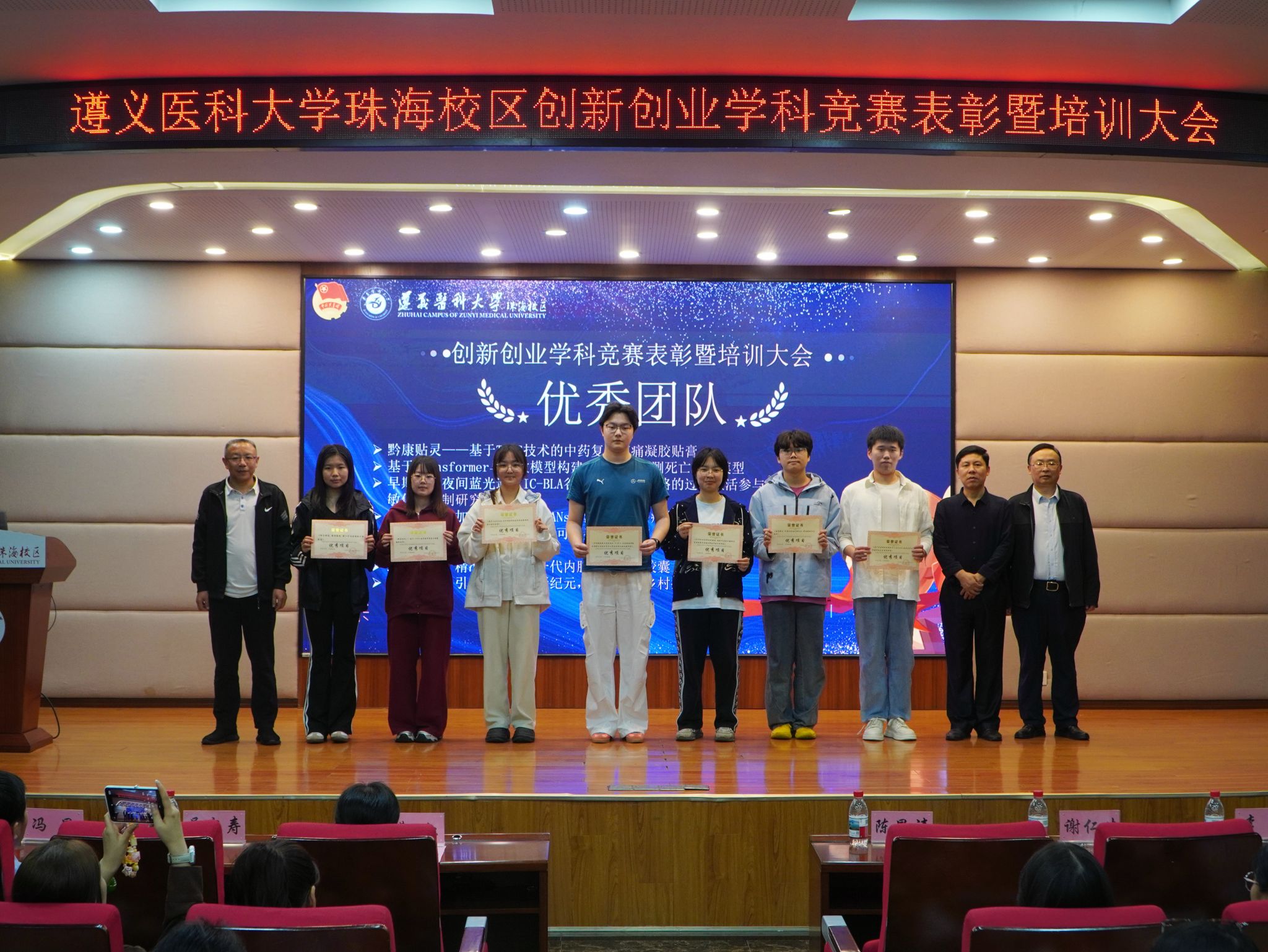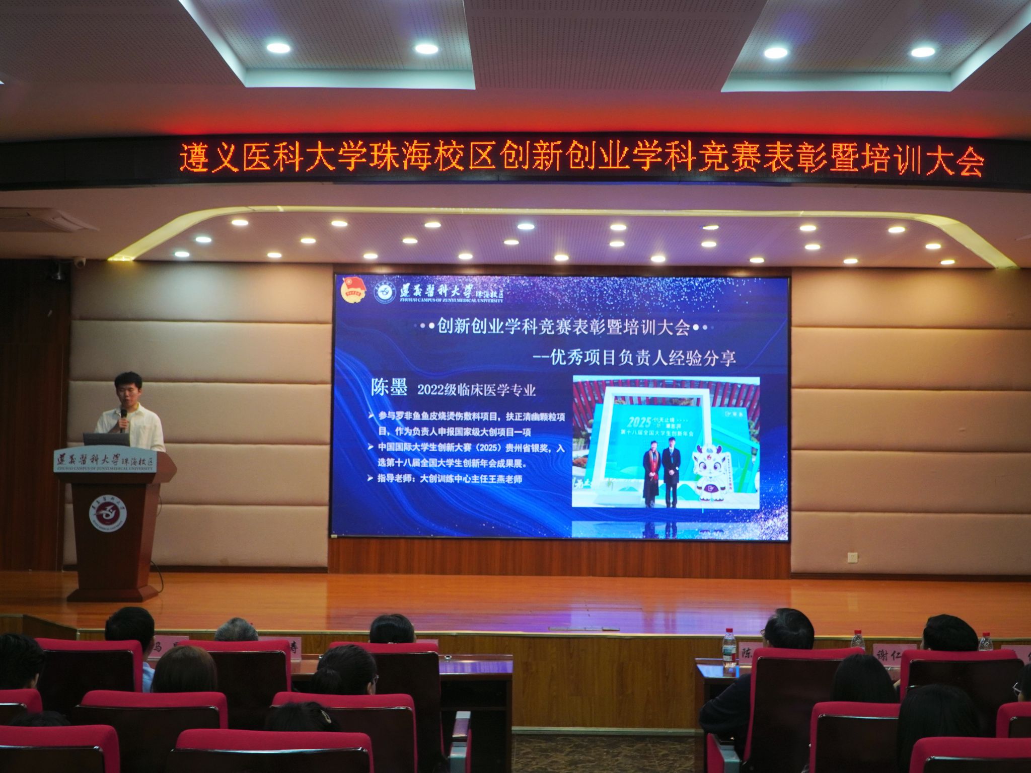 2026年3月17日晚7时,遵义医科大学珠海校区创新创业学科竞赛表彰暨动员大会在综合楼一楼学术报告厅顺利举行。校区党委副书记曹红出席,各院部系主要负责人、创新创业指导教师及参赛团队代表齐聚一堂,共同见证荣誉时刻。