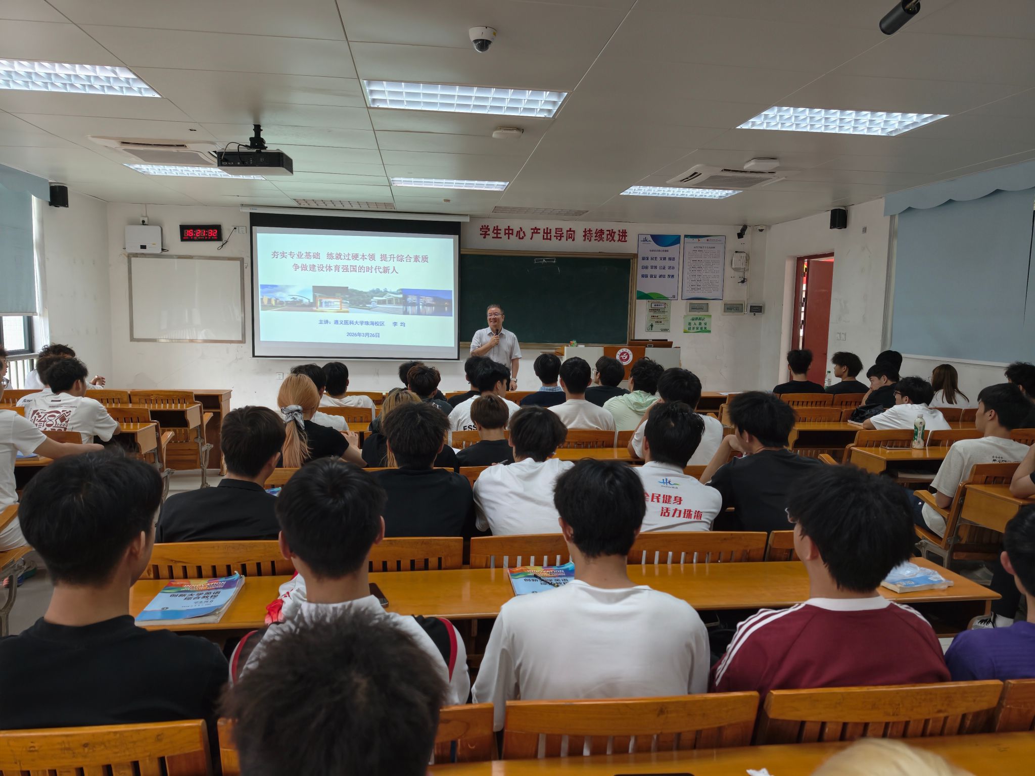 当日下午,李均在综合楼3201教室以“夯实专业基础 练就过硬本领 提升综合素质 争做建设体育强国的时代新人”为主题授课,2024级全体、2025级2班社体专业学生参加。课程立足体育强国、健康中国国家战略,紧扣“体育强则中国强,国运兴则体育兴”核心理念,阐释了体育强国建设的时代内涵。李均指出,高校人才培养需与国家发展同频共振,希望学生将个人专业成长与全民健康、国家发展紧密结合,以专业践行体育发展思想。结合校区社体专业学生在省市级比赛中的优异成绩,他要求学生按大一适应、大二提升、大三深耕、大四发展的规划夯实专业基础,将“敬畏生命”作为首要素养,锤炼综合素养,把思政元素融入专业学习。同时,结合粤港澳大湾区发展规划,他分析了社体专业的就业前景,寄语学生以优秀校友为榜样,争做健康中国筑基者、体育文化传播者、体育强国建设者。