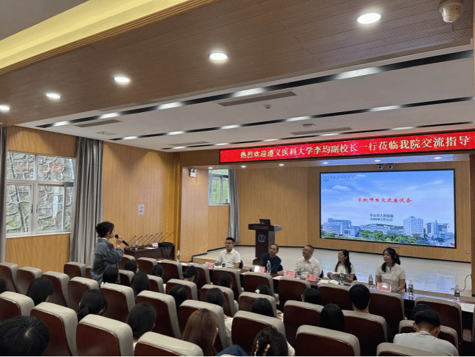 当天下午,交流会在中山市人民医院A101会议室举行。李均一行首先与医院领导及相关部门负责人进行了深入交流,详细了解医院联合培养、实习教学及学生生活基本情况。随后,李均专门组织联合培养学生、在院实习生及研究生代表进行座谈,认真听取同学们在实习期间的学习收获与生活情况,并重点就实习安全问题进行了强调和部署。