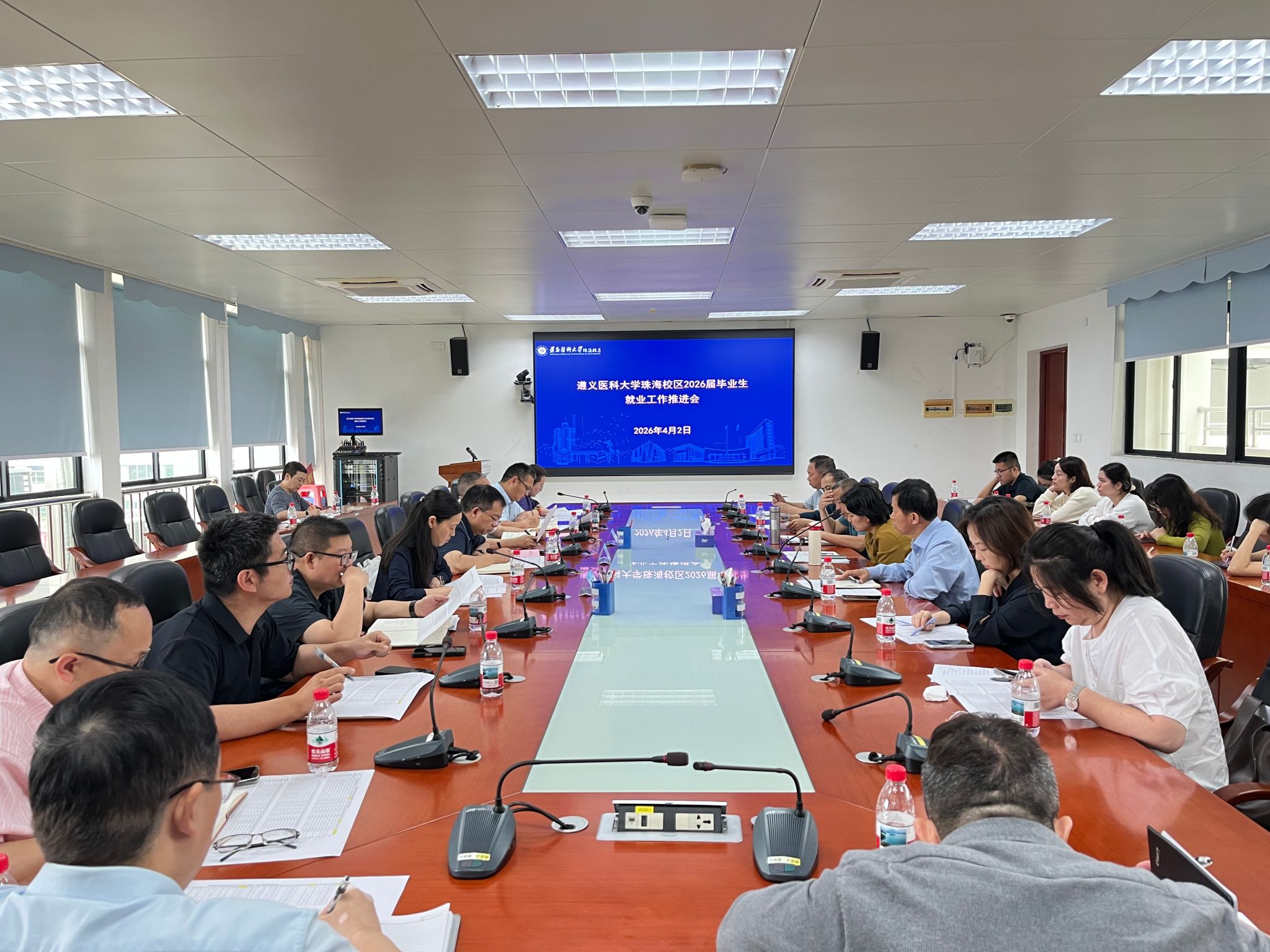 4月2日上午,遵义医科大学在新蒲校区行政楼1楼多功能厅召开2026届毕业生就业工作推进会,珠海校区在综合楼六楼3602会议室同步视频参会。学校党委副书记、珠海校区党委书记王子正,学校党委常委、副校长、珠海校区党委副书记、管委会主任李均,珠海校区党委副书记曹红,各院部系和相关职能部门负责人、毕业班辅导员参会。视频会议结束后,珠海校区随即召开就业工作推进部署会,会议由曹红主持。