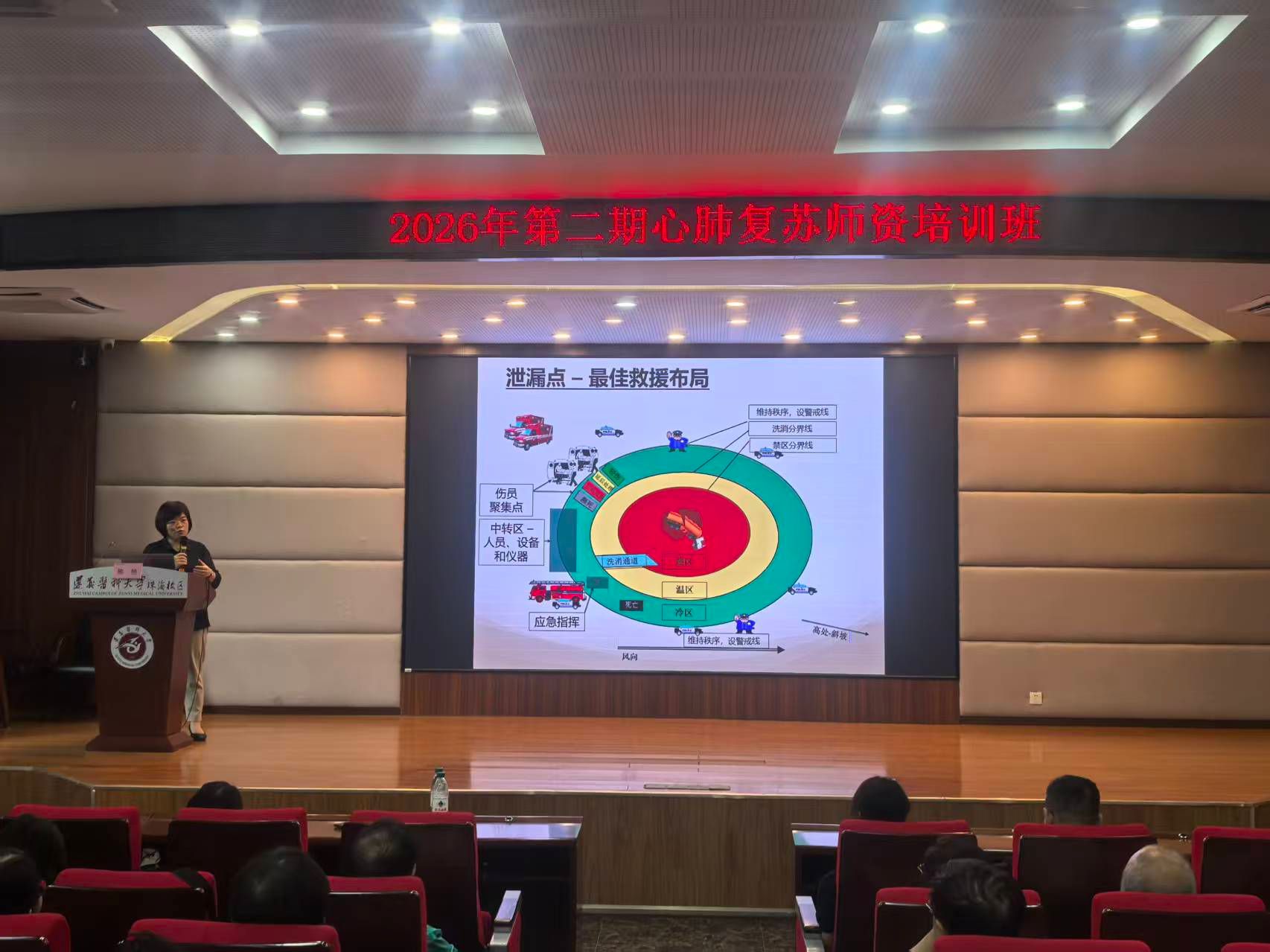 为期两天的培训紧贴实战需求,核心模块涵盖最新心肺复苏指南解读、AED使用规范、教学授课技巧、情景模拟演练及严格的理论技能考核,考核合格者获得中国医学救援协会颁发的官方心肺复苏师资证书;专题模块围绕大规模伤亡事件处置开发,设置个人防护装备、群体性中毒事件现场处置等实战课程,系统提升参训人员突发应急处置能力。