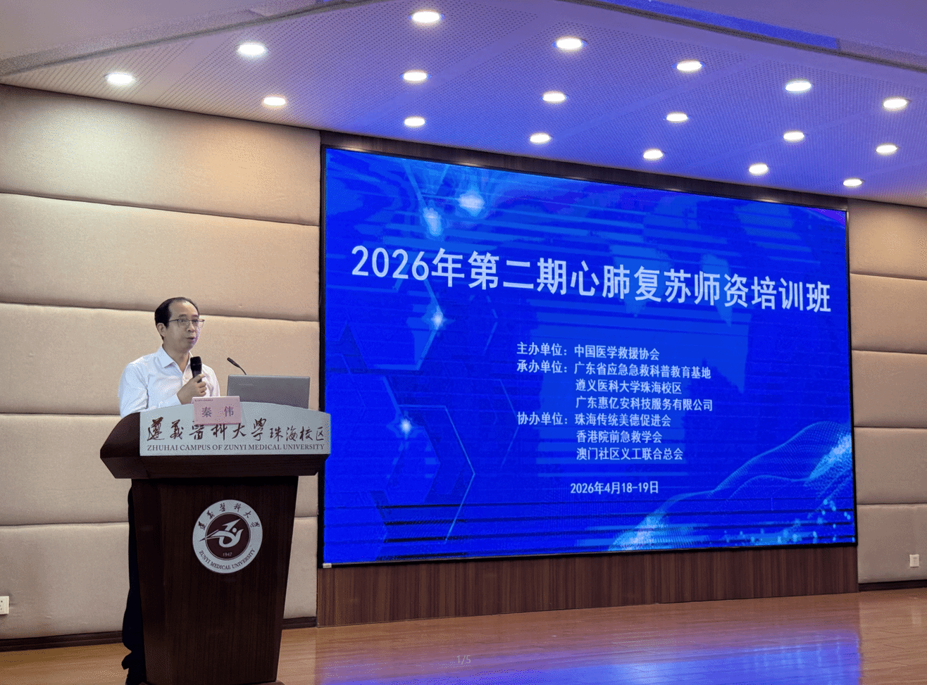 4月19-20日,由中国医学救援协会主办,广东省应急急救科普教育基地、遵义医科大学珠海校区等多家单位共同承办的2026年第二期心肺复苏师资培训班在校区开班,本次培训共吸引粤港澳三地48名急救从业者参训,珠海市国动办四级调研员尹菊秋及市委社会工作部相关业务科室负责人出席开班仪式。校区护理学系急救之心服务队提供志愿服务支持。