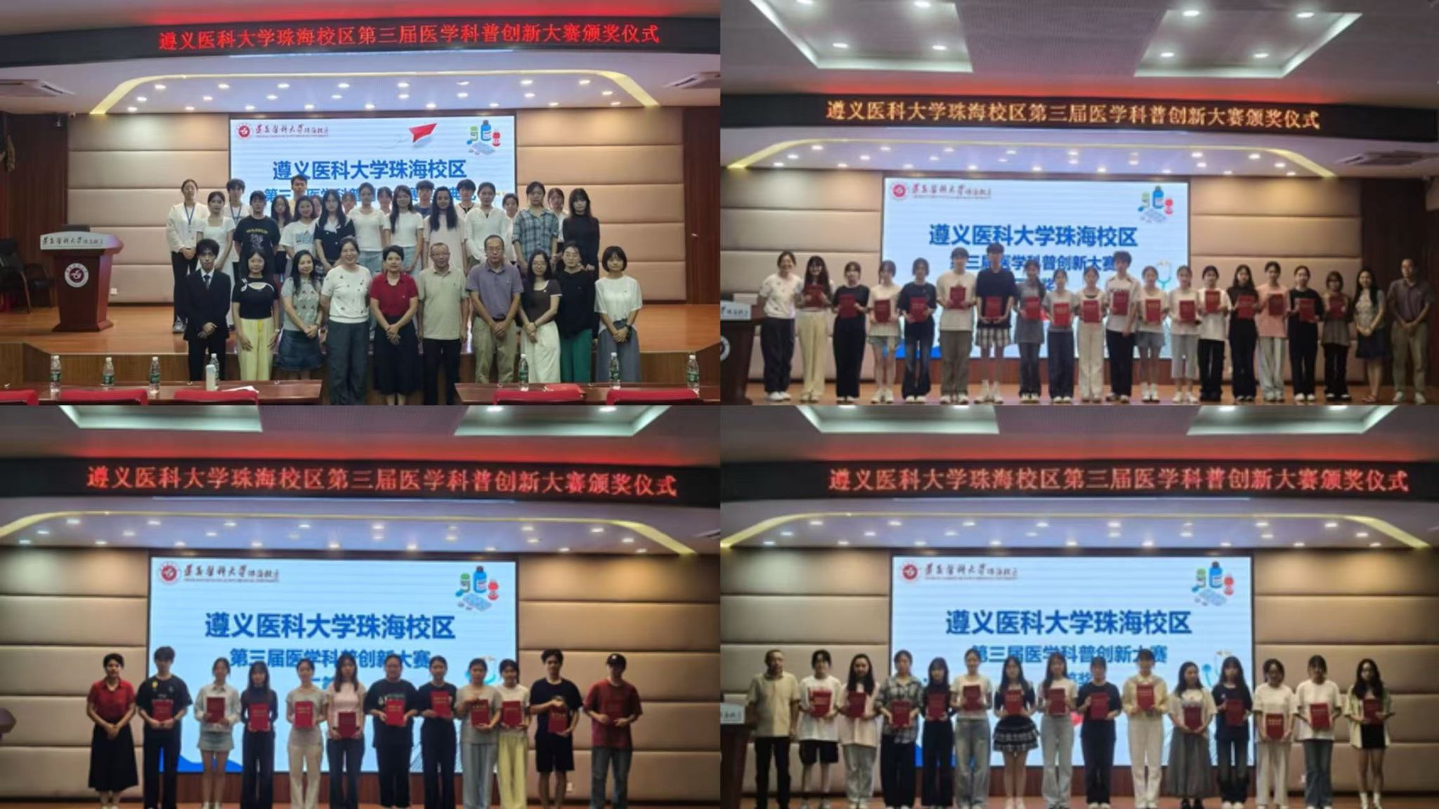 9月26日,珠海校区第三届医学科普创新大赛颁奖典礼在综合楼一楼学术报告厅举行。至此,历时数月的第三届医学科普创新大赛在师生们的共同参与和见证下圆满落幕。本次大赛由珠海校区主办,基础教学部、珠海校区科学技术协会承办,基础教学部教工第一、二、三党支部,学生第一、二党支部,2023级、2024级团总支及珠海校区科普协会联合协办。