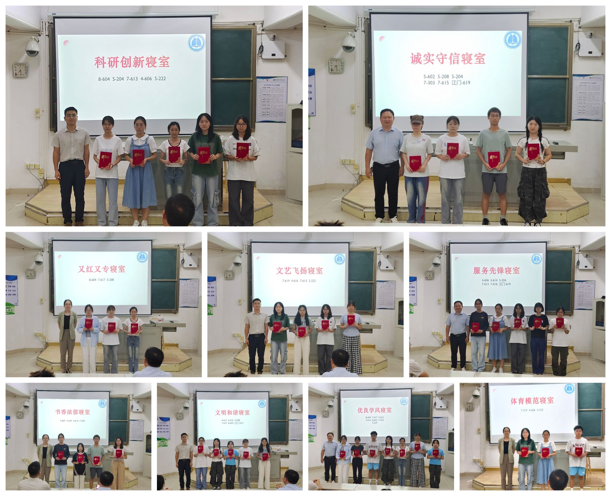 此次寝室文化节包含诚信答题和寝室评比两个专项,旨在引导学生在学习生活中践行诚信准则,使诚信文化融入寝室日常。在诚信知识竞赛中,共设一等奖1名、二等奖2名、三等奖3名、优秀奖6名。同时,寝室评比共设立优良学风寝室等9个寝室类别,部系学生寝室都踊跃报名参加此次活动。诚信知识竞赛和9个寝室类别评比,不仅考察我系学生寝室内务的整洁程度,同时也考察学习情况、科研氛围、团结友善、文明和谐、才艺展示、体质健康等。参赛各寝室自主报名,按照评比内容制作相关照片、视频、作品并上传。由部系老师与学生会干部一起对参赛寝室进行实地审核并评分,最后由医学影像学系学生会权益部和各班级生活委员组成评议小组进行名次评选工作,评选出了获得各奖项的寝室。辅导员钟仁云、蔡逸颖以及部分学生会成员深入寝室为获奖寝室授牌颁奖。