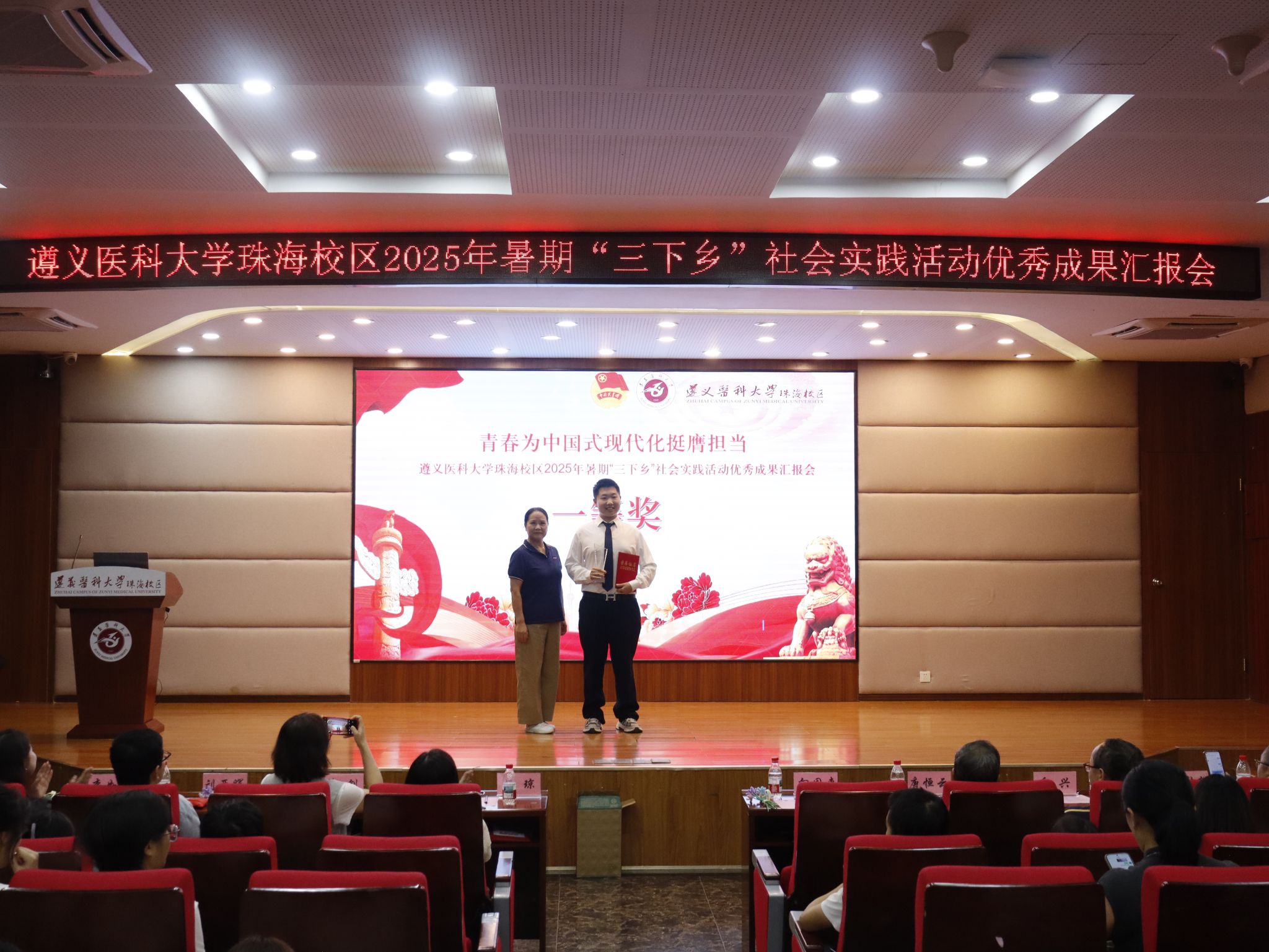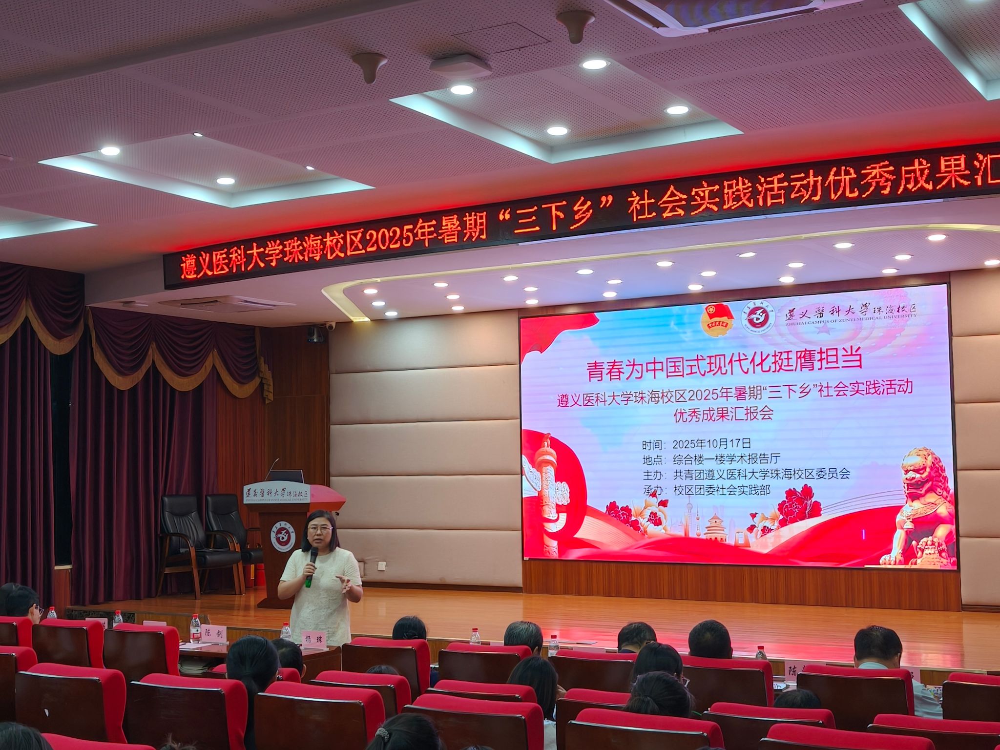 10月17日晚,珠海校区2025年大学生暑期“三下乡”社会实践活动优秀成果汇报会在综合楼一楼学术报告厅顺利举行。向国惠同志出席本次活动,各院部系书记(副书记)、校区团委、各二级团组织负责人、实践队指导教师以及百余名学生代表共同参加。汇报会特邀杨琼、陈剑、刘亚晖、李如芸四位教师担任评委,与现场师生一同回顾了各实践团队在暑期取得的丰硕成果,生动展现了校区青年学子在实践中锤炼本领、奉献社会的成长历程与时代担当。
