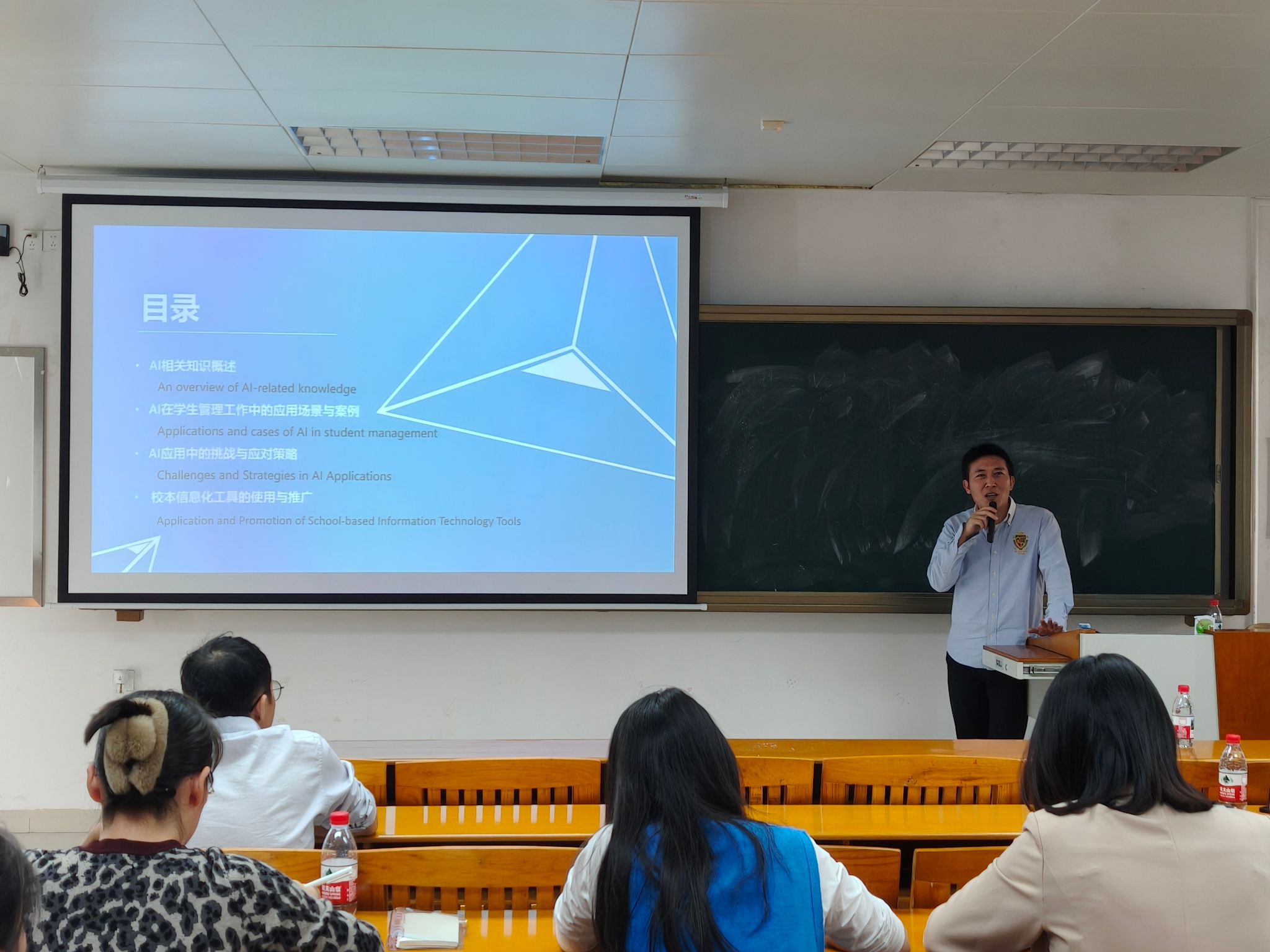 为进一步提升辅导员运用人工智能技术开展学生工作的能力,推动学生管理服务提质增效,10月24日下午,学生工作办公室特邀校区网络中心姚超群老师,开展“AI赋能·能力进阶:辅导员工作智能化提升”专项培训。全体辅导员参会,共同探索AI技术与学生工作的深度融合路径。
