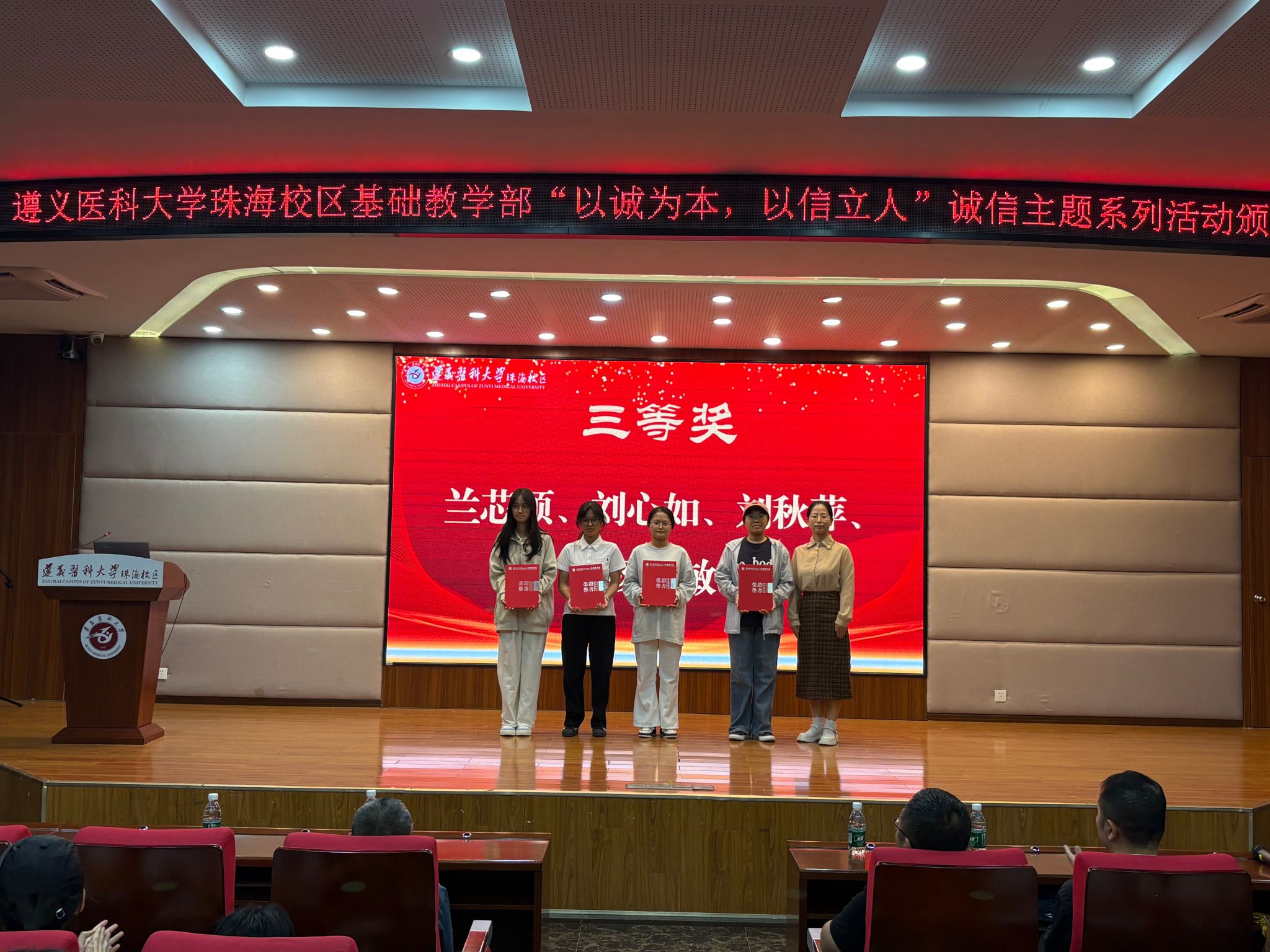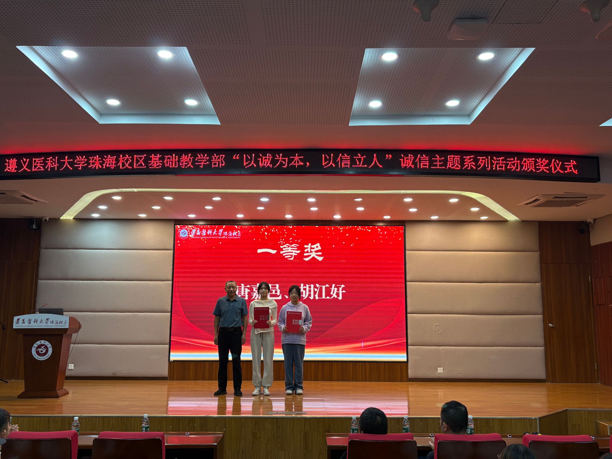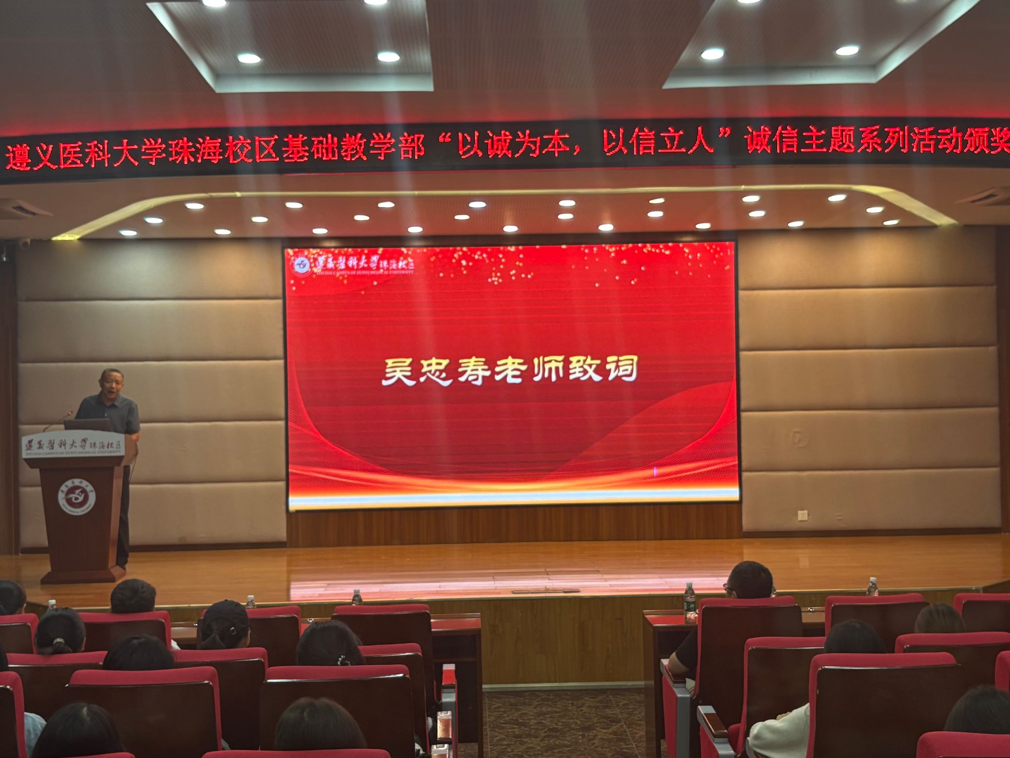 以诚为笔,可书岁月华章;以信为舟,能渡人生江海。为紧紧围绕立德树人根本任务,深入推进资助育人,增强当代大学生的诚信意识、责任担当,树立诚信学风,9-10月,基础教学部以“以诚为本,以信立人”为主题开展诚信系列活动,2025年10月27日,征文、PPT制作比赛颁奖典礼在学术报告厅顺利举行,基础教学部党委书记吴忠寿、党委副书记陈乾雄出席,辅导员老师、学生代表参加。