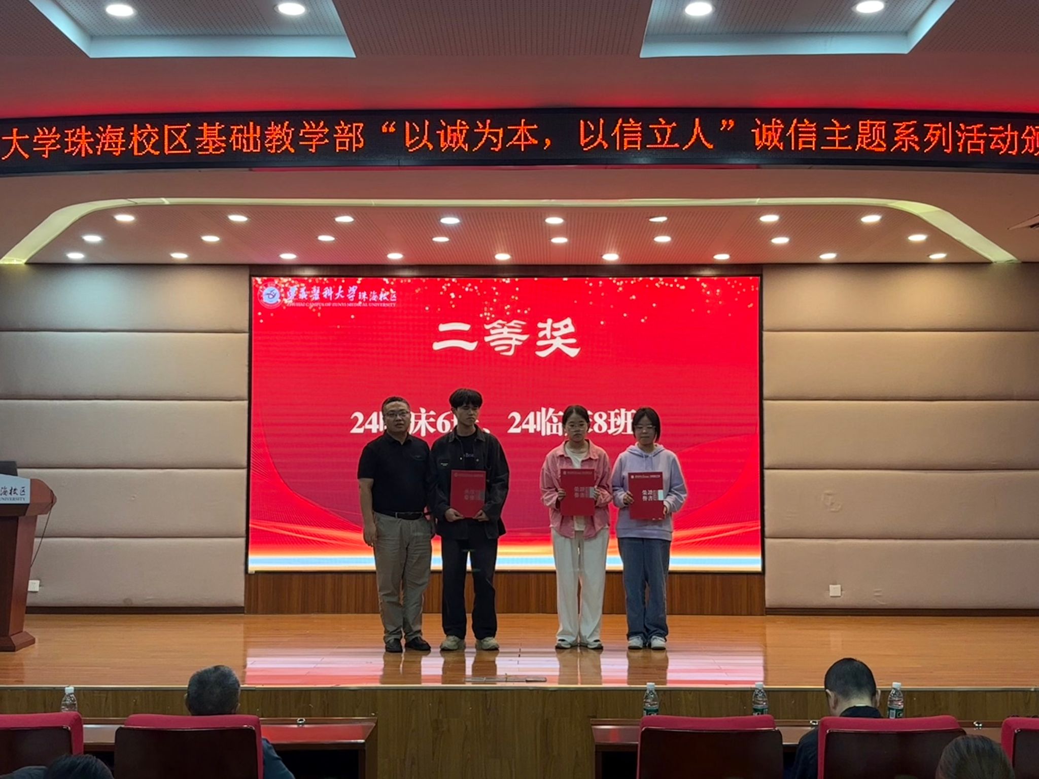 颁奖典礼上,老师们为获奖同学颁奖,鼓励大家以此次大赛为契机,将今日感悟,转化为明日坚守,将诚信内化于心、外化于行。(审核:一审吴忠寿,二审邢希如、李如芸,三审杨泽寅、蒋成东;摄影/撰稿:王壮、基础教学部学生分会)