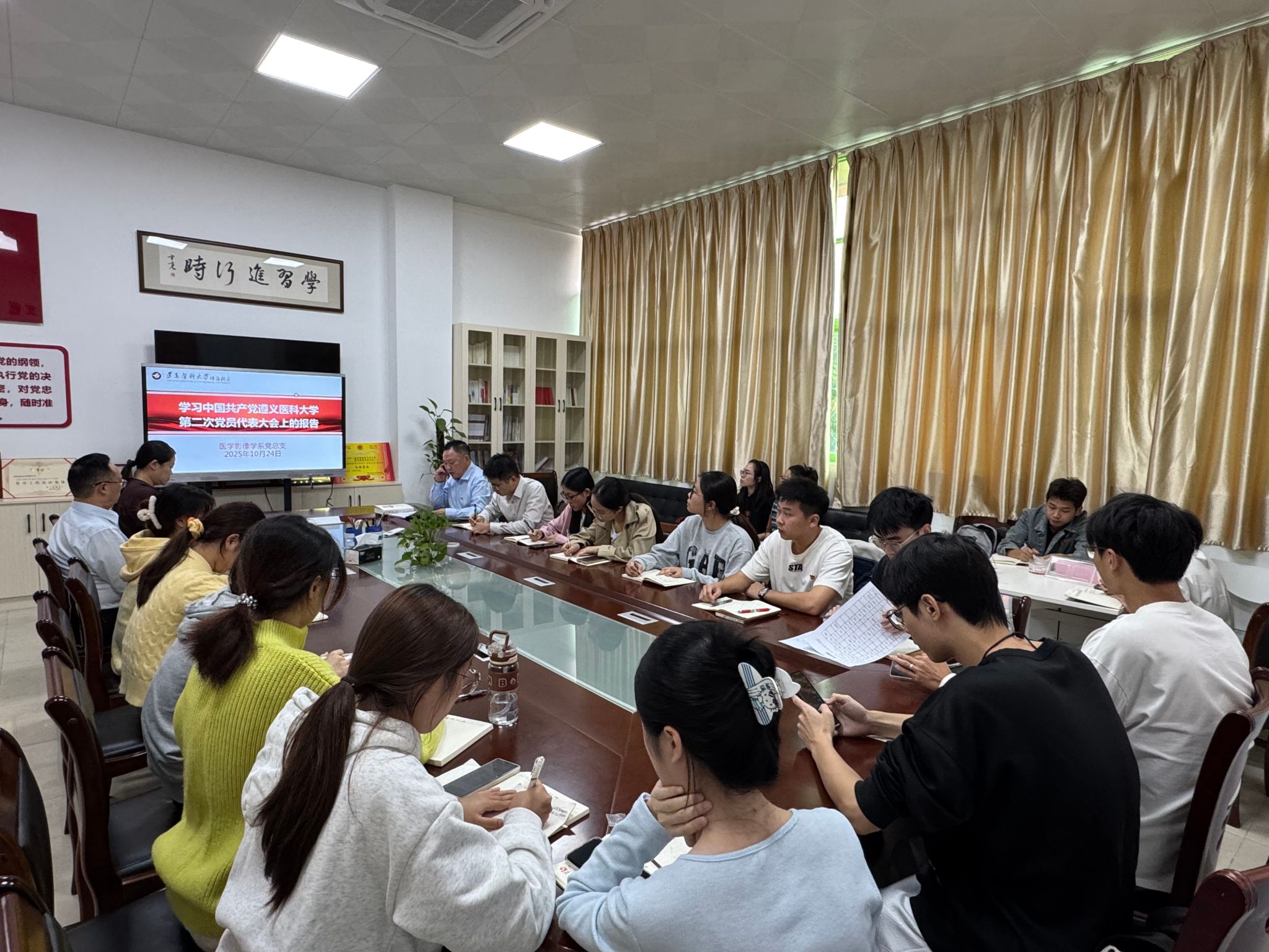 2025年10月24日下午,医学影像学系党总支开展专题党课,深入学习贯彻遵义医科大学第二次党员代表大会精神,党总支全体教工党员和学生党员线上线下相结合参加学习。党课由系党总支副书记王强主讲。