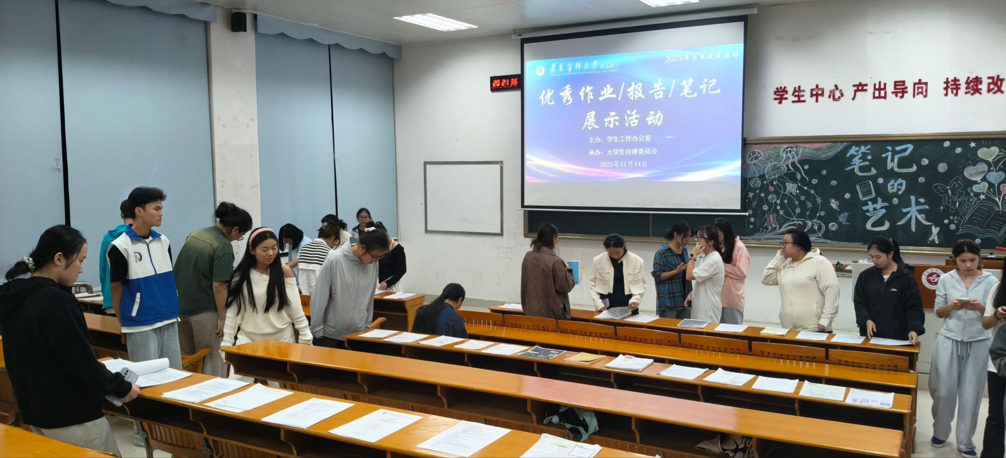 为持续深化学风建设,培养学生良好学习习惯,营造“比学赶超”的浓郁学习氛围,校区学生工作办公室于2025年10月至11月组织开展学生优秀作业、笔记和实验报告评选活动,并于11月14日晚在综合楼3105教室成功举办优秀作品展示,为学子搭建了交流学习、展示专业能力的优质平台。