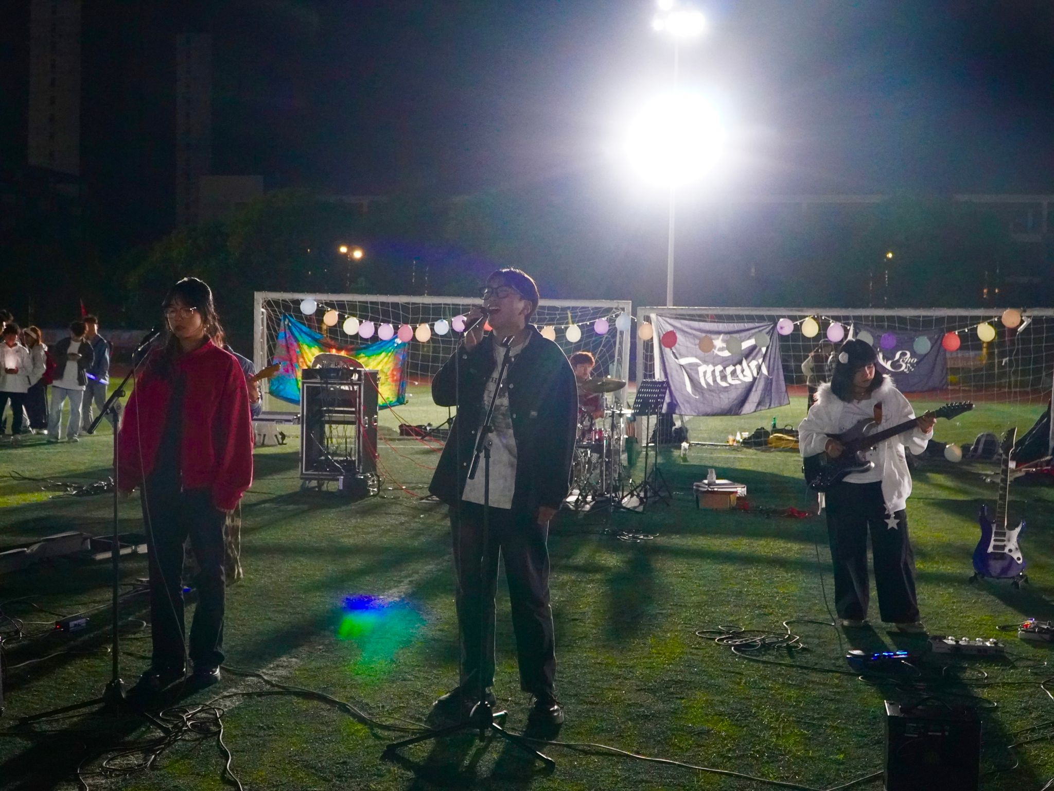 2025年11月28日晚七点,为丰富校园文化生活、搭建学生才艺展示平台,由校区团委主办的星空音乐节在足球田径场成功举办。本次音乐节特邀暨南大学与珠海城市职业技术学院的优秀乐队同台献艺,为校区师生带来了一场视听盛宴。
