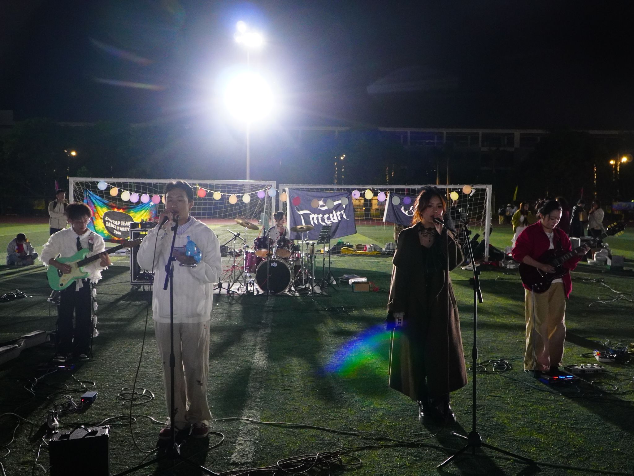中场环节的“彩蛋表演”更添惊喜:礼仪模特队身着设计感服饰,步伐与鼓点完美契合,将时尚与音乐融合;Fanapi街舞队的地板动作、啦啦操队的高难度托举引发阵阵尖叫;樂暗蓝乐队的原创作品唱出校园日常,收获阵阵掌声。 后半程舞台被摇滚与独立音乐占据:草东没有派对《大风吹》的嘶吼释放年轻张力,沉舟乐队《雏菊》的迷幻旋律裹住柔软情绪,红髮少年《短髮》的温柔与犬儒乐队《皮囊》的尖锐,碰撞出音乐的多面性。当朴树《平凡之路》前奏响起,全场灯光骤亮,“跨过山和大海”的合唱声浪将氛围推向高潮,乐手与观众同唱,让舞台成为所有人的“青春主场”。