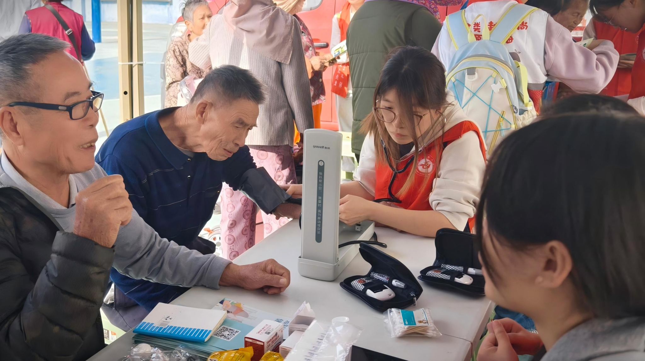 活动现场,校区6支专业志愿服务队各展所长,为村民带来实用而生动的健康服务。口腔志愿服务队开展了“口腔健康护全身”科普宣讲,通过模型演示与互动问答,细致讲解正确刷牙方法和日常护齿常识。医疗志愿服务队持续推进“下乡防痨+慢病筛查”行动,为村民免费检测血糖血压、建立健康档案,并针对结核病防治与慢性病管理提供专业咨询。现场,脊柱健康服务也备受关注,医影随行志愿服务队通过体态评估与康复指导,帮助居民纠正不良姿势,提升脊柱保健意识。光源志愿服务队则围绕“科学运动强骨骼”主题,结合实操示范,传授适合不同人群的运动方式与防护技巧。同时,志愿者们也将关爱延伸至特殊群体,红十字志愿医疗服务队开展了“陪伴不孤单·共情暖星宝”自闭症关爱行动,通过科普宣讲帮助家长提升照护能力,并以温暖互动陪伴“星宝”孩子们度过温馨时光。此外,青年志愿服务队同步开展了“垃圾分类齐参与·绿色家园共守护”环保宣传活动,借助趣味游戏等方式生动讲解垃圾分类知识,倡导绿色生活方式,引导村民共同参与生态家园建设。