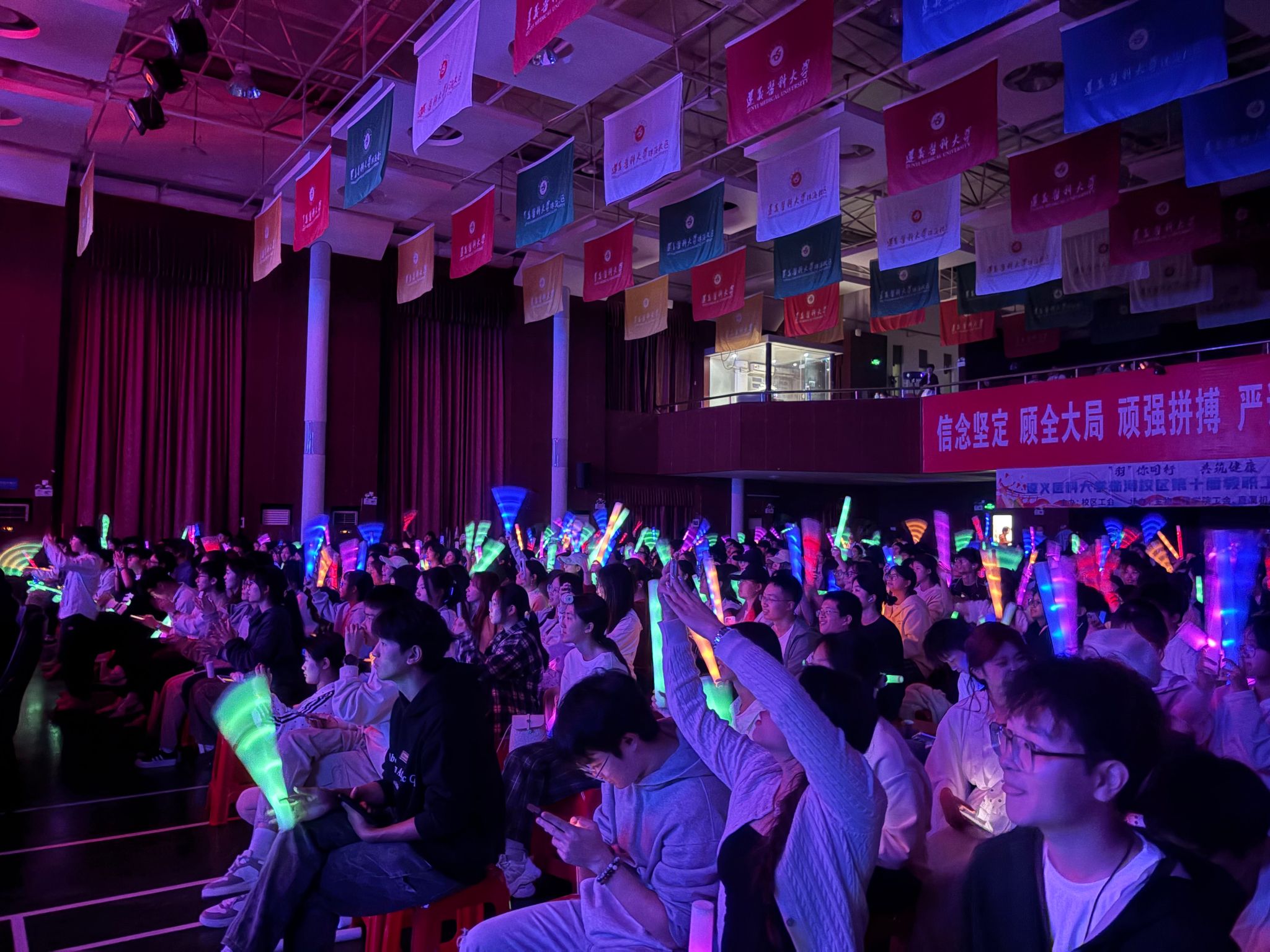 随后,晚会通过视频回顾、才艺演出与创意展示等形式,生动呈现了同学们在宿舍生活中“遇见”的美好点滴与青春故事。节目精彩纷呈:乐器演奏《平凡之路》诠释了平凡中的力量;《舞蹈串烧》《猪猪侠》点燃现场,唤起童年回忆;歌曲《岁月神偷》《冻结》《同花顺》唱响青春情怀;《脱口秀·大学》展现了语言的魅力与思想的火花;小品《次元同频:羁绊无界》开启奇妙跨次元之旅;《非遗扎染展示》则以一抹蓝白,晕染出非物质文化遗产的独特韵味。