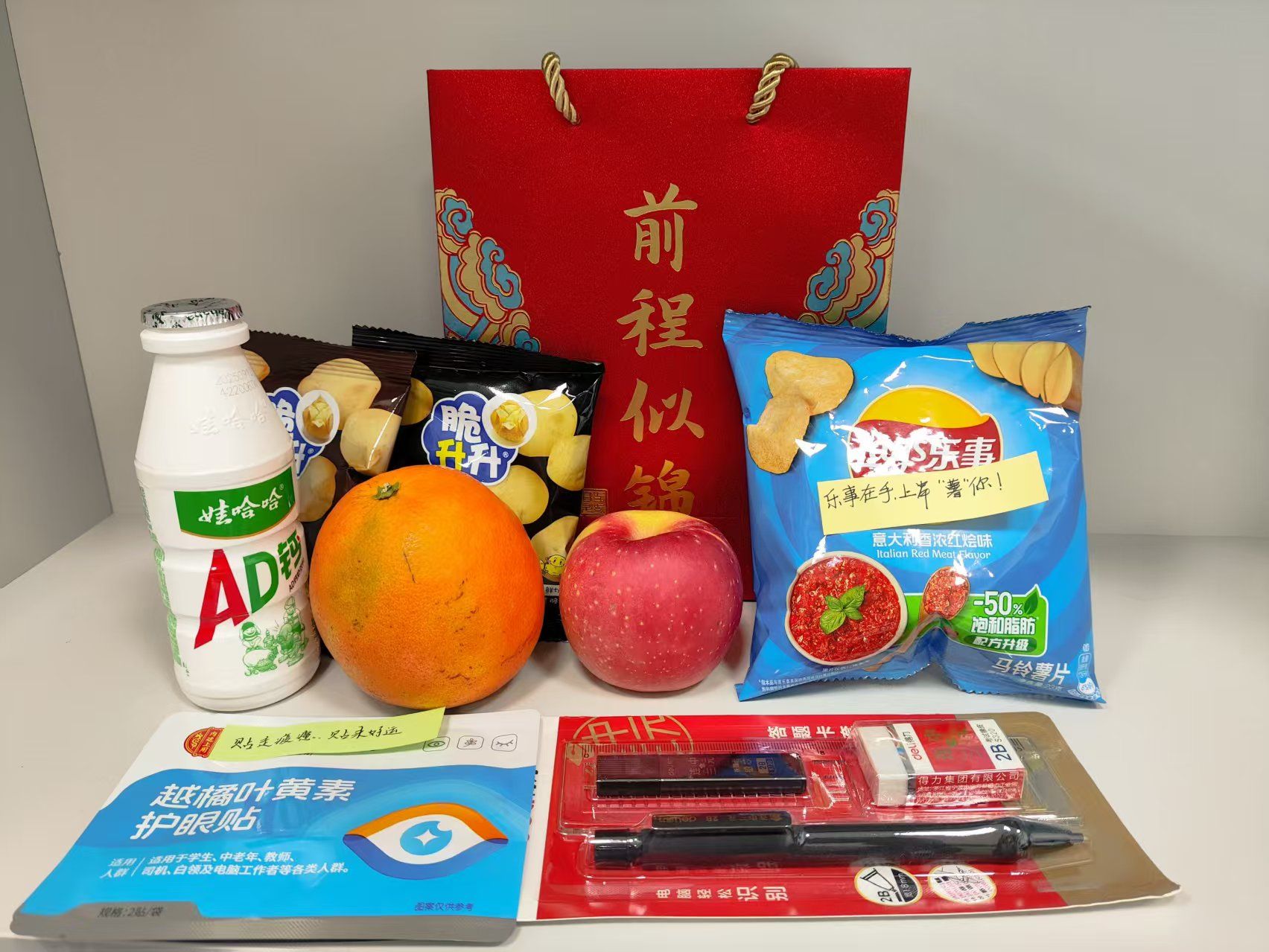 本次暖心行动覆盖11个实习单位及所有考研学生,确保关怀精准送达、全员覆盖。加油包内不仅有学弟学妹们亲笔书写的明信片,字字句句饱含鼓励与祝福;还有寓意满满的暖心小物:“贴走疲惫,贴来好运”的眼贴,呵护双眼、缓解疲劳;“一瓶AD钙,满分好状态!加油!”的AD钙奶,为高强度复习注入活力;“乐事在手,上岸‘薯’你!”的乐事薯片,带来轻松一刻;“吃了脆升升,分数升升升”的脆升升,寄托成绩节节高的美好愿望;象征“苹稳上岸”的苹果和寓意“一站橙硕”的橙子,更以谐音巧思传递最真挚的祝福。这份集实用、温情与巧思于一体的加油包,让身处各地实习岗位的考研学子倍感温暖与鼓舞。