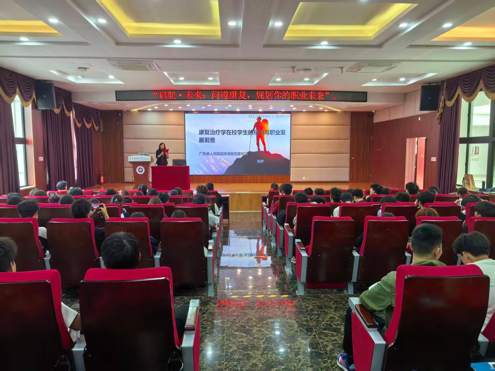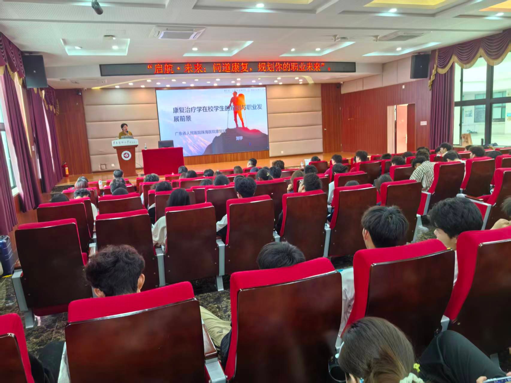 2025年12月5日,校区基础教学部在综合楼一楼报告厅隆重举办“启航未来,问道康复”主题讲座。本次讲座特邀金湾中心医院康复科主任刘宇教授担任主讲嘉宾,聚焦康复治疗学专业职业规划与青少年颈椎健康两个主题。基础教学部副主任陈燕玲、体育教研室主任李冬奎、免疫教研室主任卢彦欣等师生代表共130余人参加活动,讲座由康复治疗学教研室主任刘宁主持。