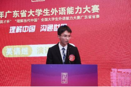 为培养复合型国际传播人才,本次英语组赛事设置国际传播综合能力(分综合能力、定题演讲、即兴演讲)、翻译(分笔译、口译)以及短视频赛项。根据2025年广东省各高校晋级省赛选手名额分配,校区共选拔出3名选手入围国际传播综合能力省赛,2名选手入围笔译省赛。在竞争激烈的省赛舞台上,徐培钧凭借其稳健的台风、过硬的语言功底和跨文化交际能力在演讲赛项中斩获银奖。尹语涵在笔译赛项中展现出精准的语言转换能力和深厚的双语功底,荣获铜奖。