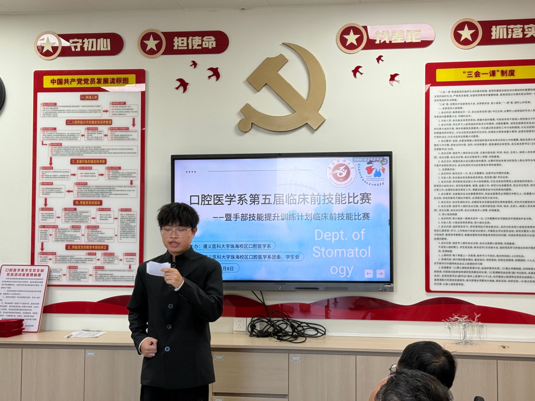 为持续推进口腔医学系综合实践能力培养,促进理论学习与实践操作深度融合,12月8日中午,珠海校区口腔医学系第五届临床前技能大赛颁奖仪式在B栋109举行。本次大赛以“匠心雕琢,技筑医魂”为主题,于11月14日至28日举办,由口腔医学系党总支主办,团委、学生会承办,口腔医学系党总支书记岳兴、学生党支部副书记乐尧金、团委、学生会指导老师刘桦及2025级口腔医学专业全体同学参与。