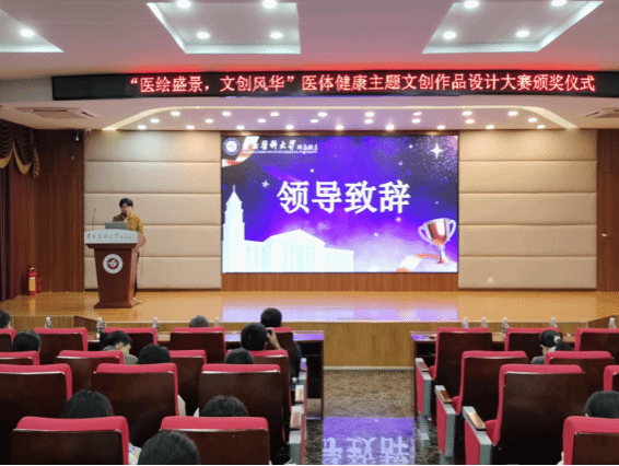 2025年12月8日晚,基础教学部“医绘盛景 文创风华”—医体健康主题文创作品设计大赛颁奖典礼在综合楼一楼学术报告厅举行,基础教学部党政领导吴忠寿、陈乾雄、陈燕玲出席,全体辅导员、教工第一党支部的老师及获奖同学们参加。至此,为期近一个月的医体健康主题文创作品设计大赛顺利落下帷幕。本次大赛由基础教学部主办,基础教学部教工第一党支部、基础教学部各学生党支部、基础教学部团委承办,基础教学部2024级、2025级团总支、遵义医科大学上春山汇学辅导员工作室、校区生命健康协会联合协办。