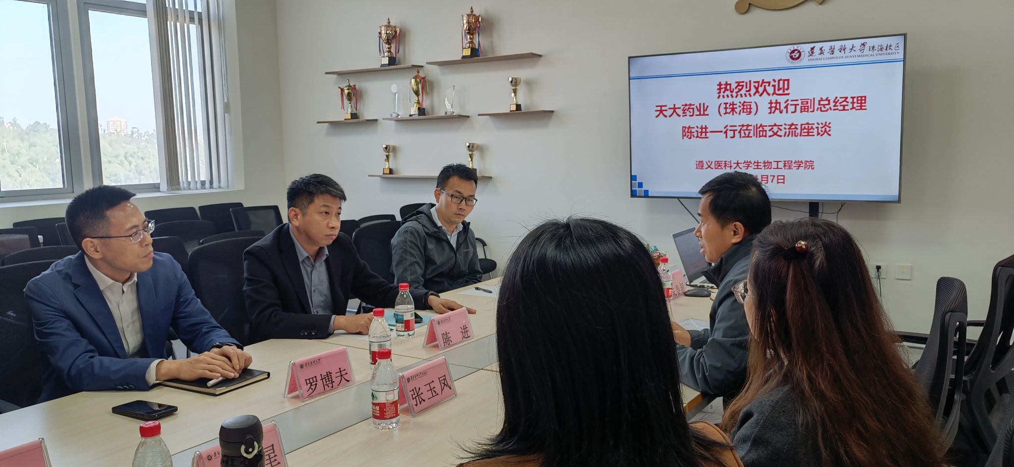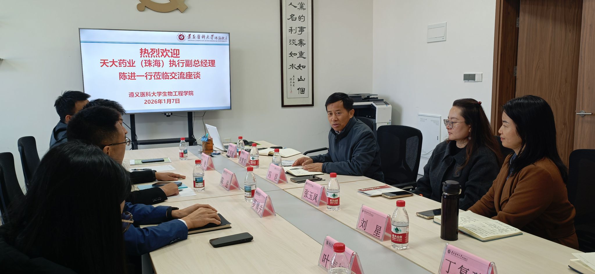 1月7日上午,天大药业(珠海)有限公司执行副总经理陈进一行四人到访生物工程学院,双方就人才培养、实习就业、产教融合等议题进行了深入交流。生物工程学院党总支副书记、院长冯昆,招生就业科科长张玉凤、实习管理科科长申慧芳及相关教师代表共同参加了座谈。