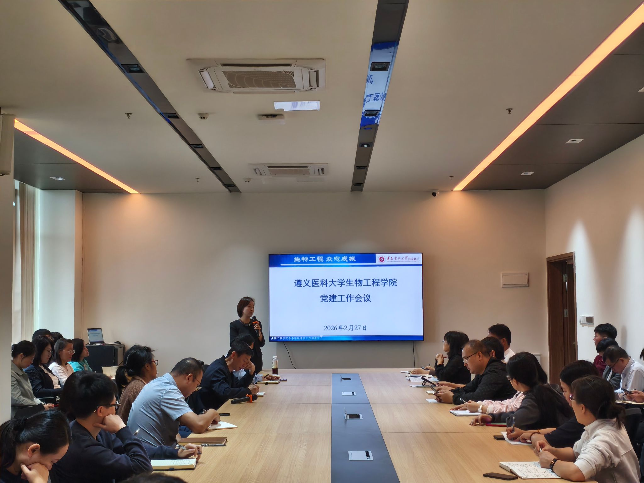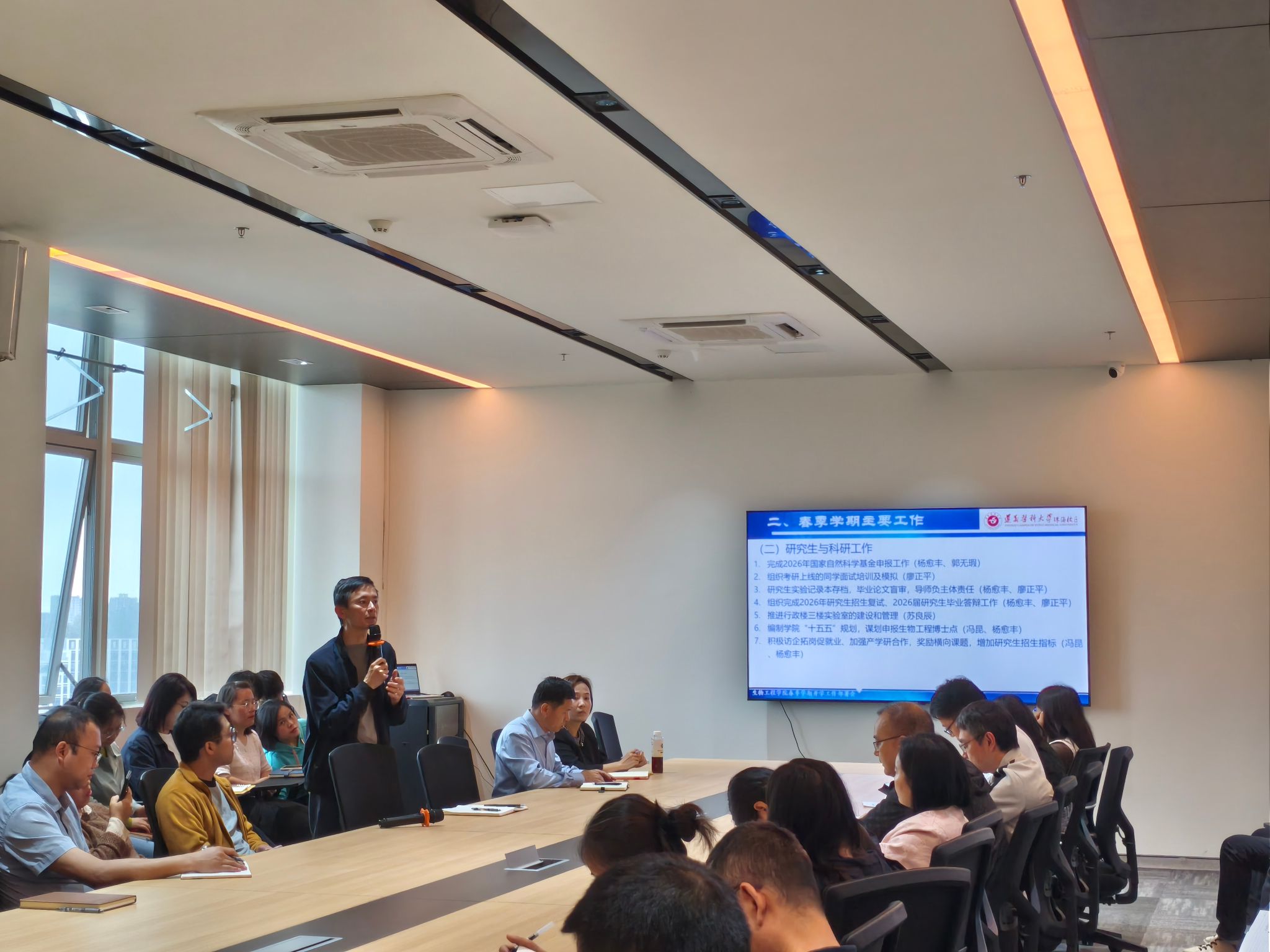 会上,冯昆通报学院2025年度综合考核结果,鼓励大家正视不足,努力提升。同时宣布学院生物与医药硕士点专项合格评估获31位专家全票通过的喜讯。对全体教师在过去一年中的辛勤付出表达了诚挚的感谢,并强调在新的学期,大家需继续发挥自身优势,举一反三整改问题。冯昆还全面总结寒假工作,并从教学、研究生与科研、管理工作三方面部署新学期工作,明确要严把教学质量关、攻坚国自然基金申报、谋划博士点申报、推进 “生物医药与美妆现代产业学院” 申报等核心任务。