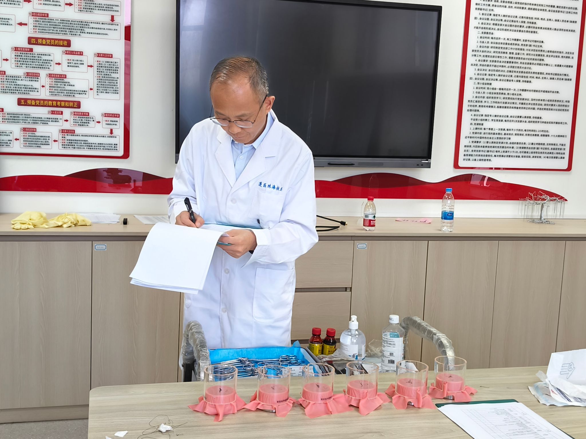 比赛启动后,选手们在近三小时的角逐中,严格遵循临床规范,精准把控每一个劳动细节,充分展现出勤于实践、善于钻研的劳动态度与专业素养。评委老师们结合劳动教育要求,从操作规范、流程完整度等多维度细致评分、严格把关。