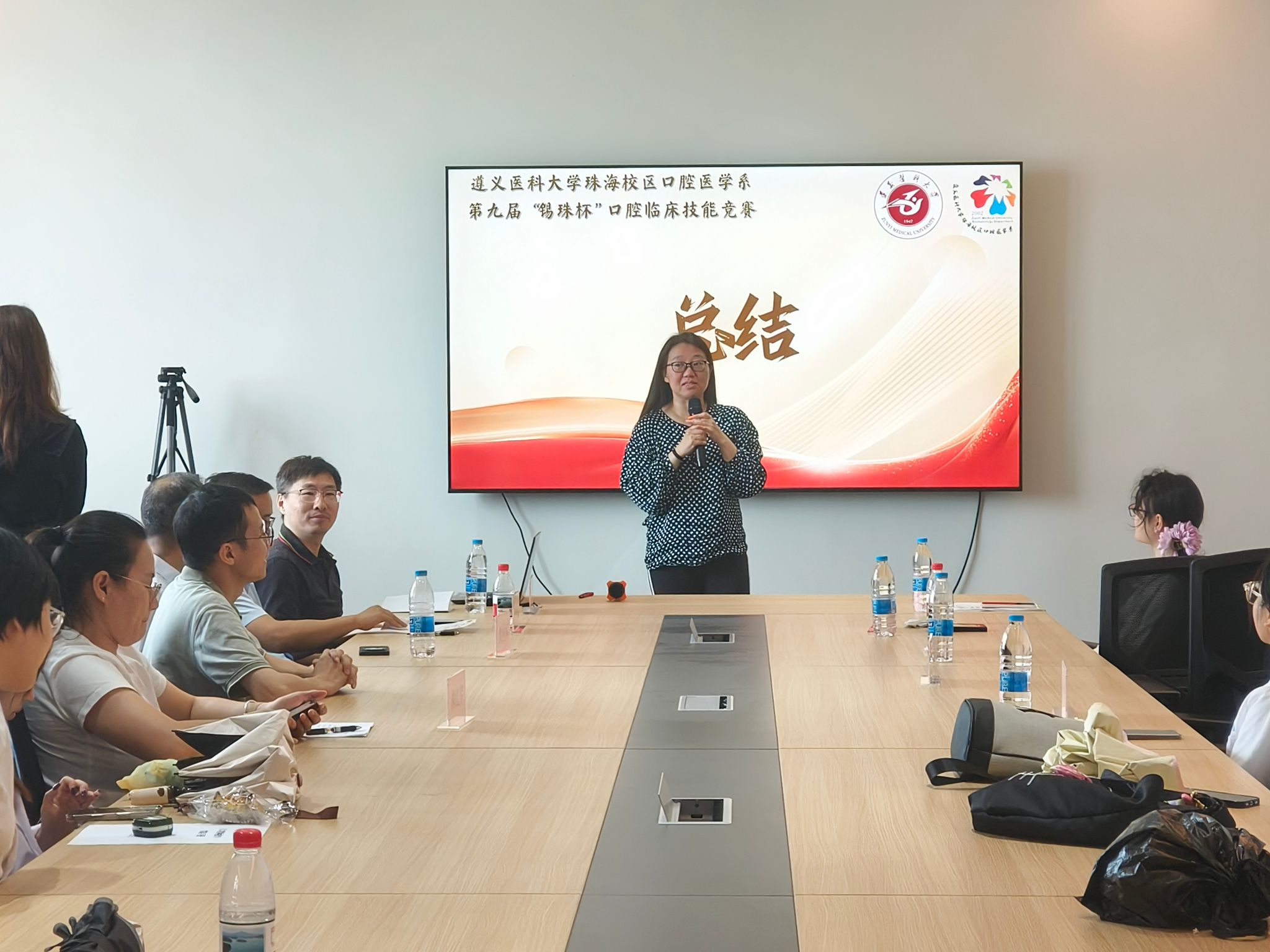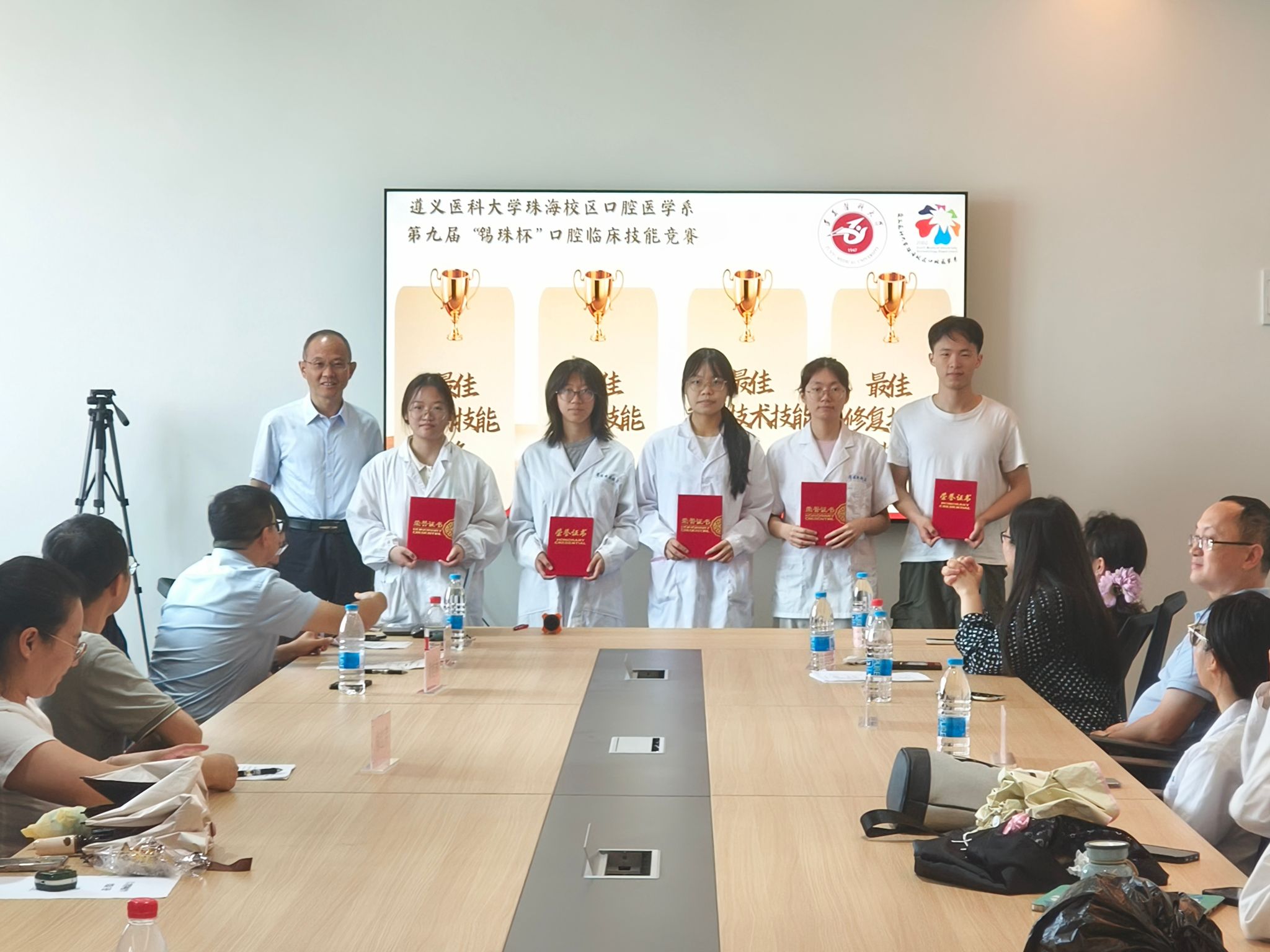4月18日上午,由校区学生工作办公室、口腔医学系主办,口腔医学系团委、学生会承办的2026年“劳动最光荣”学生劳动教育专项活动暨第九届“锡珠杯”口腔临床技能竞赛,在校区实验楼B栋708会议室及1楼实验室隆重举行。珠海校区党委委员、管委会副主任黄桂林,遵义医科大学第五附属(珠海)医院李广生,护理学系黄晓敏,口腔医学系白朋元、柳红芹五位老师担任评委;口腔医学系党总支书记岳兴、副主任何苇、辅导员乐尧金、团委指导老师刘桦、实验员曾乔冰出席本次活动,口腔医学系2022级全体同学参与竞赛。