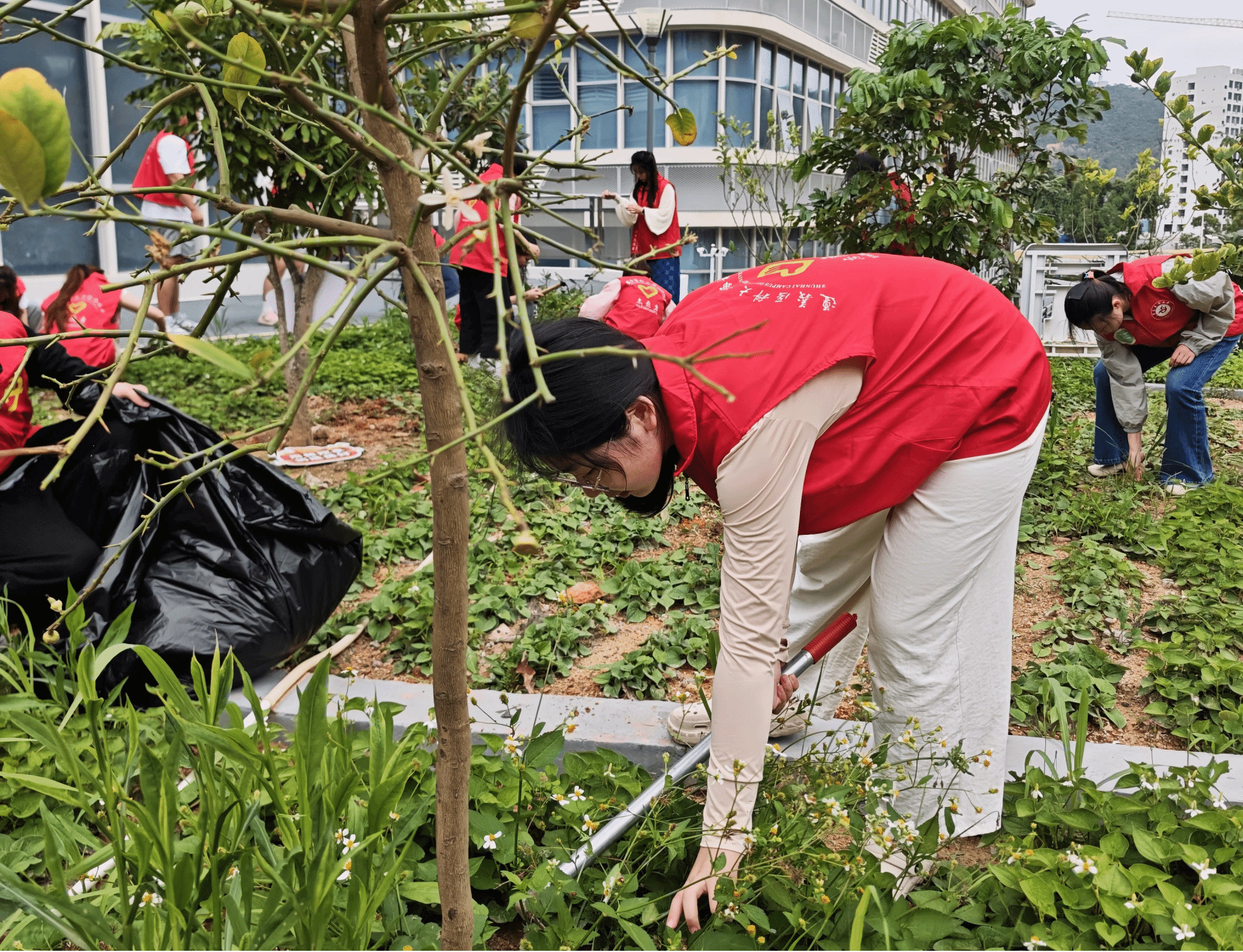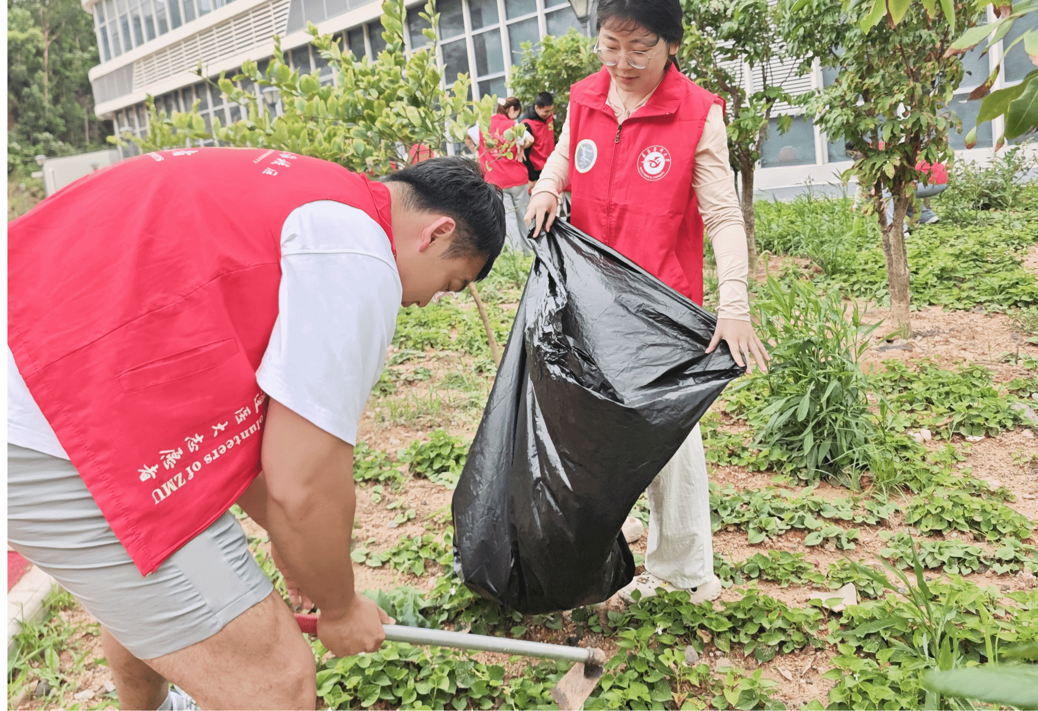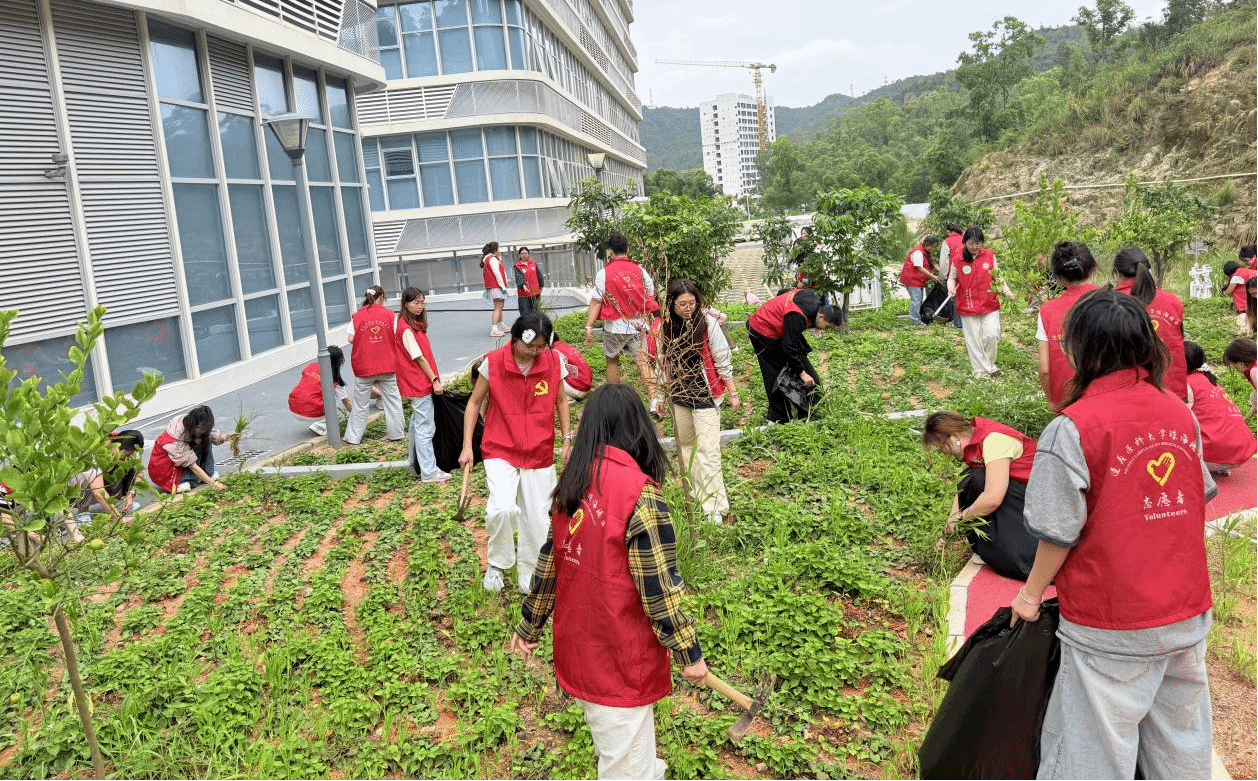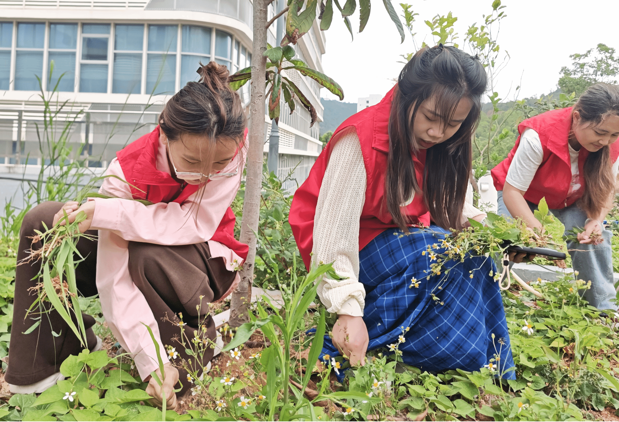 药用植物园是药学专业重要的教学实践基地,园内种植了石斛、金银花、牛大力等药用植物。时值春夏之交,植物生长旺盛,但也伴随着杂草滋生、需水量增大等问题。生物工程学院主动联系后勤管理部门,将劳动课堂搬进专业园地,让学生在躬身实践中感悟劳动价值,巩固专业知识。