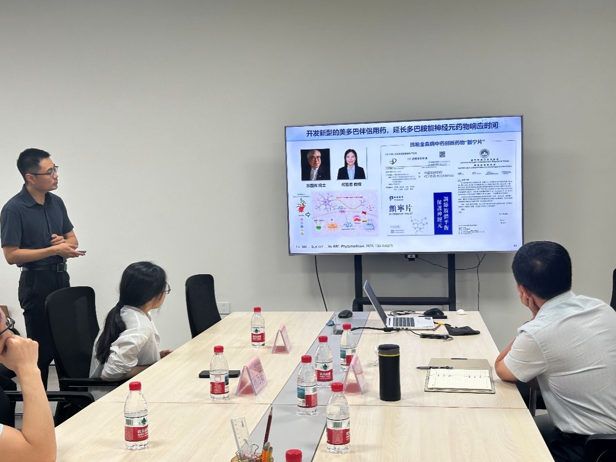 在学术交流环节,孙教授带来了题为“多巴胺能神经元脂质过氧化损伤机制和中药干预研究”的精彩学术报告。帕金森病作为第二大神经退行性疾病,给患者和社会带来沉重负担,其临床治疗一直是现代医学难题。当前治疗药物存在疗效减退、症状反复、毒副作用等问题。孙教授团队从脂质代谢氧化修饰的新颖视角,探究了帕金森的发病机制,并基于中医“情志致病”理论和“疾病易感性”的生物医学基础研究了我国特色中药资源对此类疾病的干预作用,为神经系统疾病的研究和治疗提供新方向。随后孙万阳与大家进行了深入交流,为与会人员提供了诸多有益的借鉴和启示。