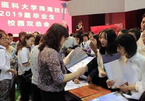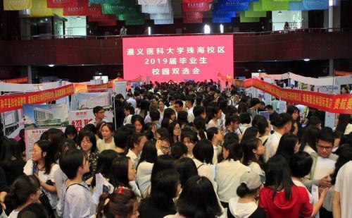 珠海特报客户端30日上午,遵义医科大学珠海校区2019届毕业生校园双选会在该校大礼堂举行,来自广东、贵州等地的80多家用人单位,提供了近2000个岗位,此次双选会规模为该校历年之最。记者现场了解到,药学等医学类专业毕业生受热捧。