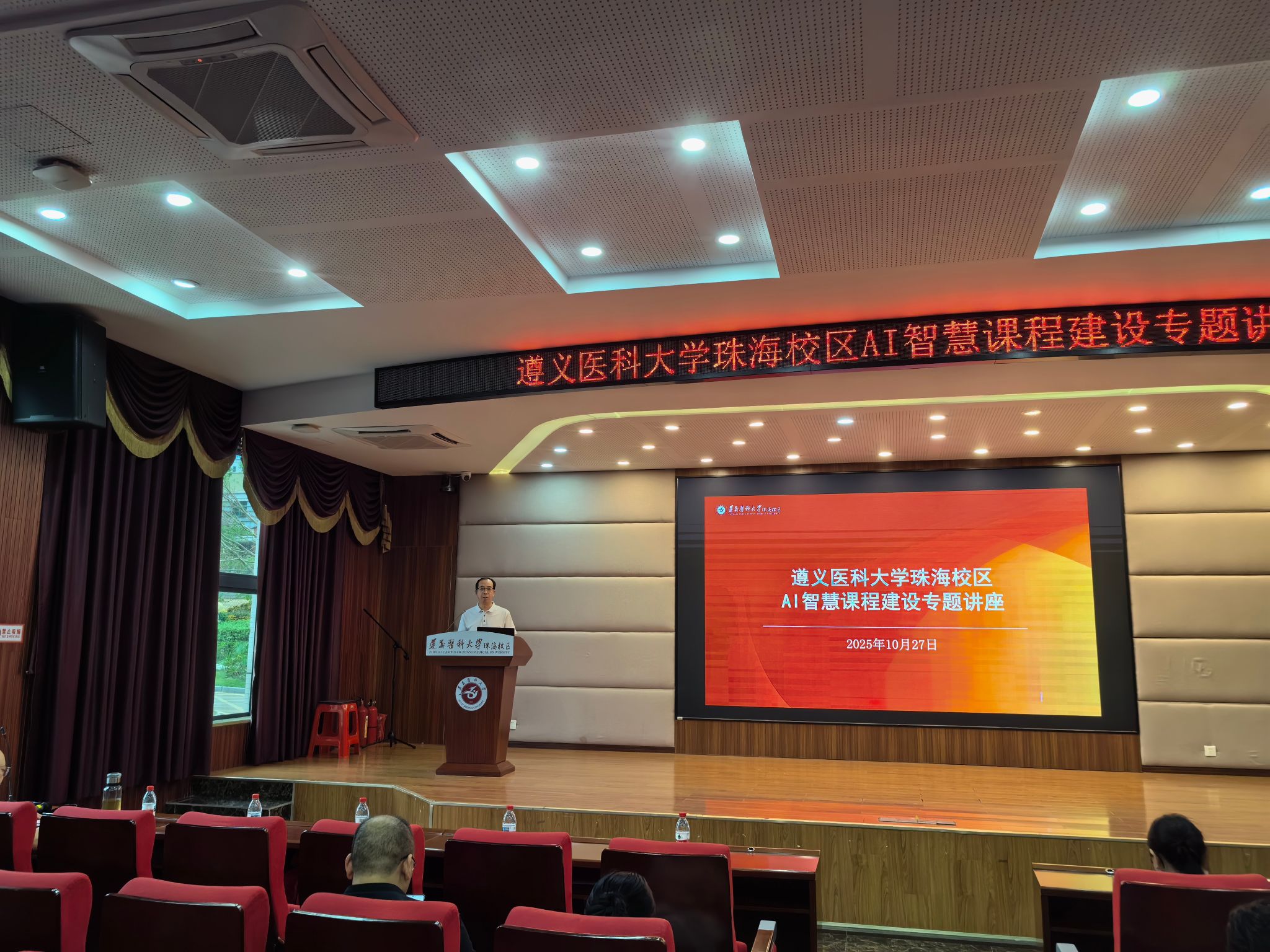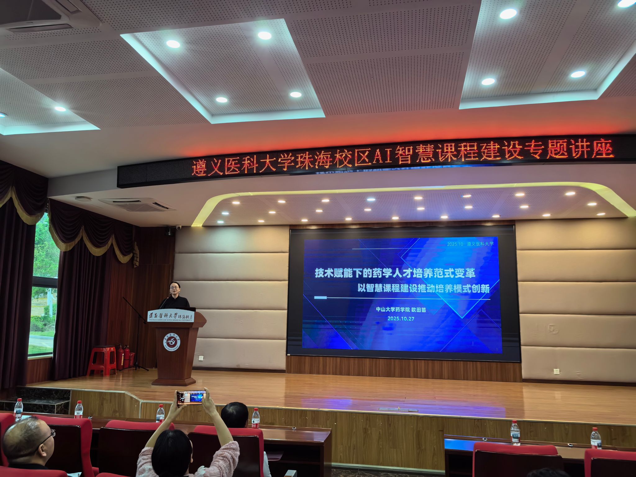 2025年10月27日下午,校区“AI智慧课程建设专题讲座”顺利举行。本次活动由智慧树公司鼎力支持,长期关心校区教育数字化改革的中山大学药学院欧田苗教授应邀主讲,校区领导、智慧树公司同仁及师生代表齐聚现场,共探AI赋能教育新路径。