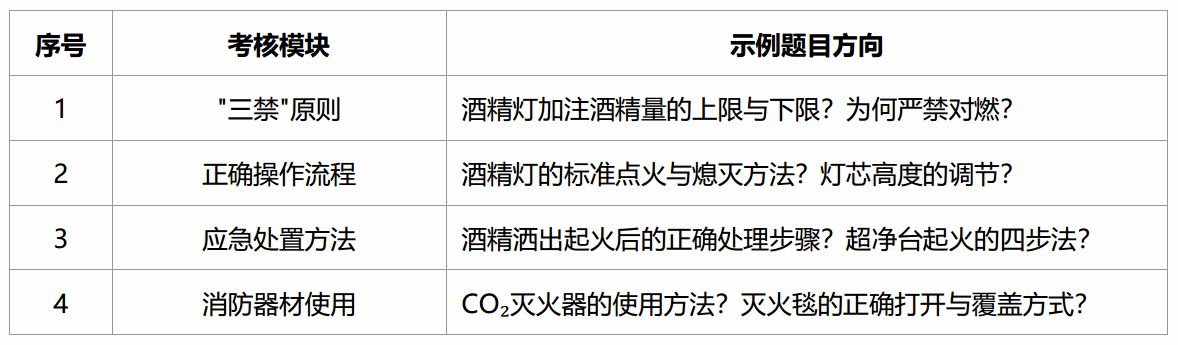 培训物资:酒精灯演示套件、灭火毯、CO₂灭火器(演练用)、湿抹布