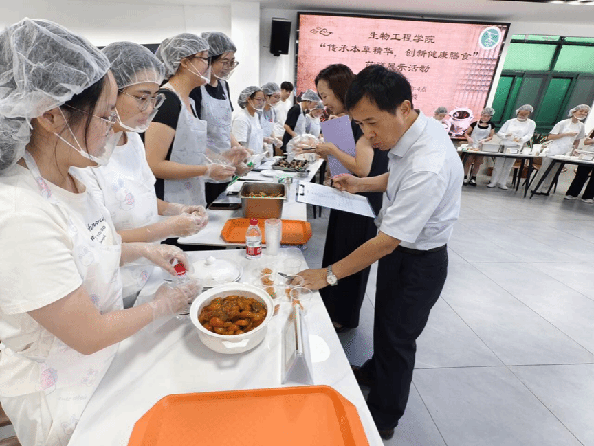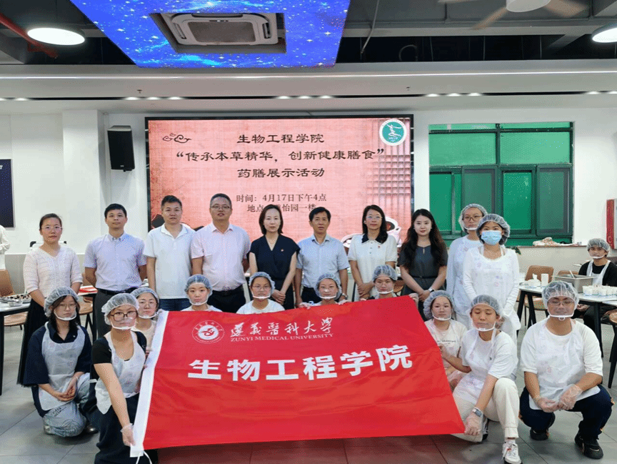 为弘扬中医药膳食疗文化,深化药学专业实践教学,强化学生动手实践能力培养,促进大学生创新创业项目成果落地应用,2026 年4月17日下午,生物工程学院在遵怡园食堂一楼成功举办“传承本草精华,创新健康膳食”药膳展示活动。生物工程学院党总支书记陈晶、院长冯昆、校区学工办主任蒋成东、药学教研室、生物工程教研室、学工办、机关七支部教师代表出席并担任评委,近百名学生参与此次药膳品鉴。