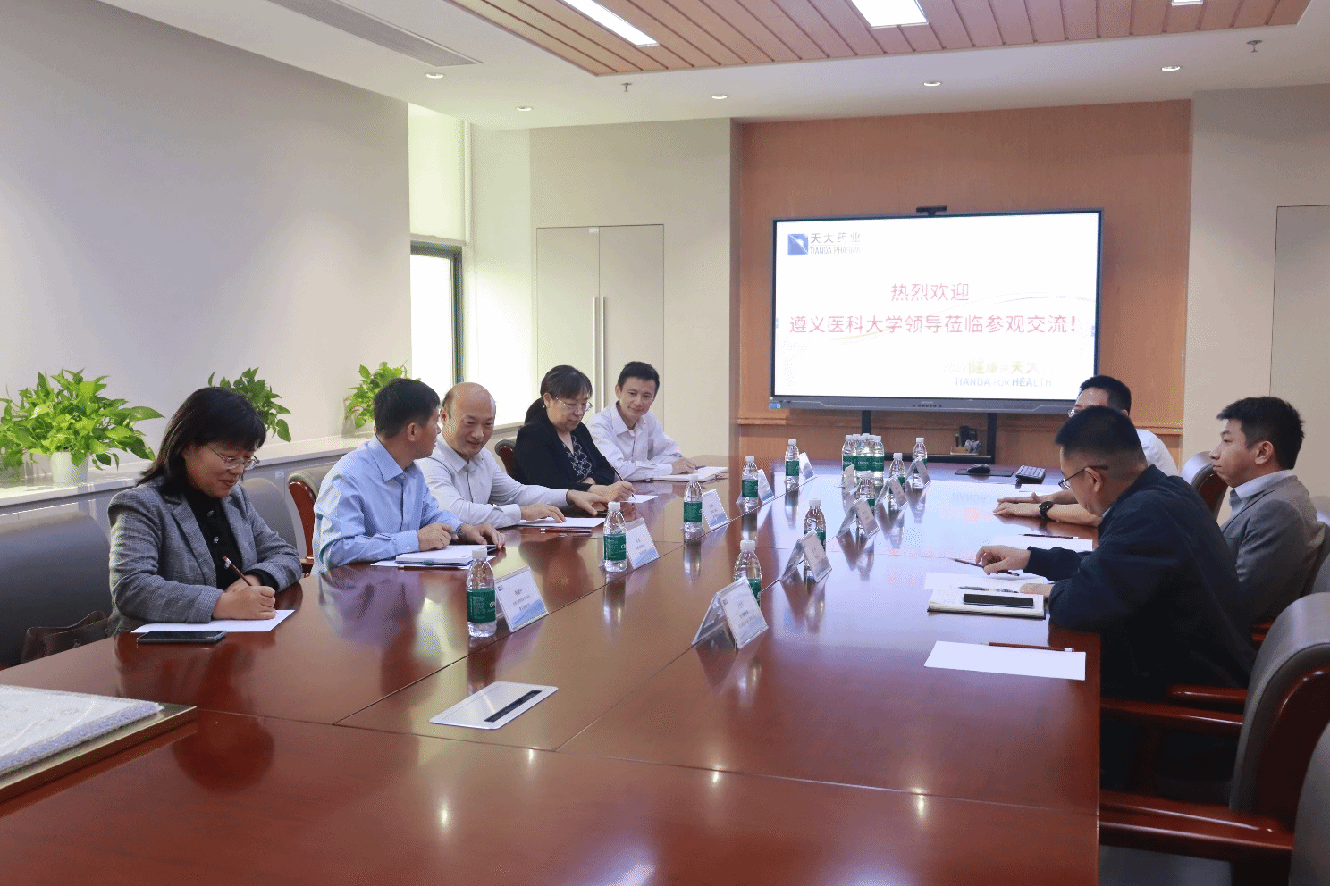 随后,袁泽利副校长一行前往天大药业(珠海)有限公司开展调研。在交流过程中,双方就人才联合培养、校企服务对接、产学研深度融合等议题达成一致意见,明确了长期合作方向。天大药业执行副总经理陈进全面介绍了企业的业务领域、发展规划,并结合企业实践经验,对学校实习生培养提出针对性建议,同时围绕科研项目合作、科研成果转化、人才定制培养等方面提出具体合作构想,为后续双方精准对接奠定基础。