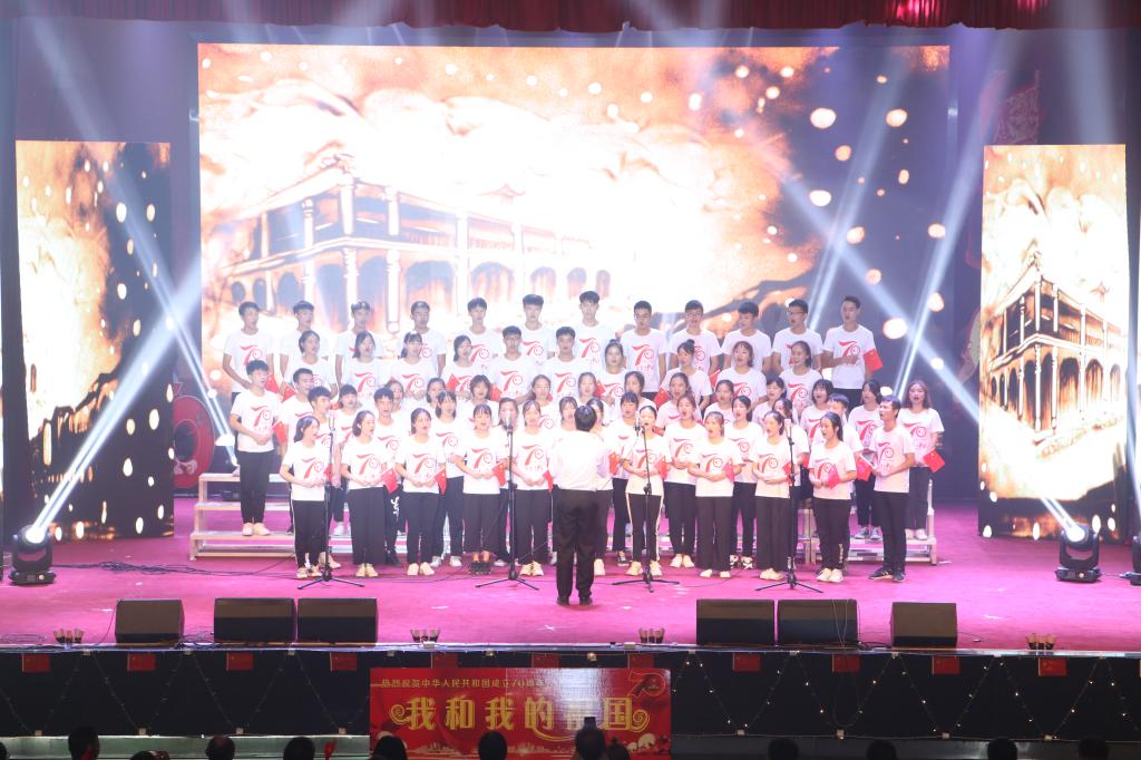 各部系学子在开场视频中为全体新生带来最诚挚的祝福,十佳歌手带领全场观众挥舞着手里的国旗,高声唱响《红旗飘飘》,向祖国致以最诚挚的祝愿。晚会表演形式多样,歌曲、舞蹈、走秀、诗朗诵、乐器演奏等精彩节目为观众带来一波接一波的视听享受。其中,大学生艺术团器乐队带来表演《向阳花》,旭日东升,向阳花开,祝福祖国和青年一代越来越好。五附院带来舞蹈《春桃》,像一朵朵桃花在春天里绽放,祖国也迎来发展的春天。校区工会带来合唱《今天是你的生日,中国》向祖国表达美好的生日祝福。大学生艺术团主持队的诗朗诵《中国,我的中国》,深情道出新中国七十年来的风雨成就,歌颂作为中华儿女的自豪之情。民舞队的《映山红》将现场观众带回历史,感受红军坚定的信念和永不服输的精神,红色的回忆与对革命先烈的缅怀令人肃然起敬。医学影像学系师生代表唱响《少年中国说》,坚定嘹亮的声音合着音乐和鼓声表达了一代青年当自强的雄心壮志。《走进新时代》、《奋斗的青春》等节目不断掀起高潮,现场掌声不绝。最后晚会在大学生艺术团合唱团表演的《托起生命的帆船》中圆满落下帷幕。