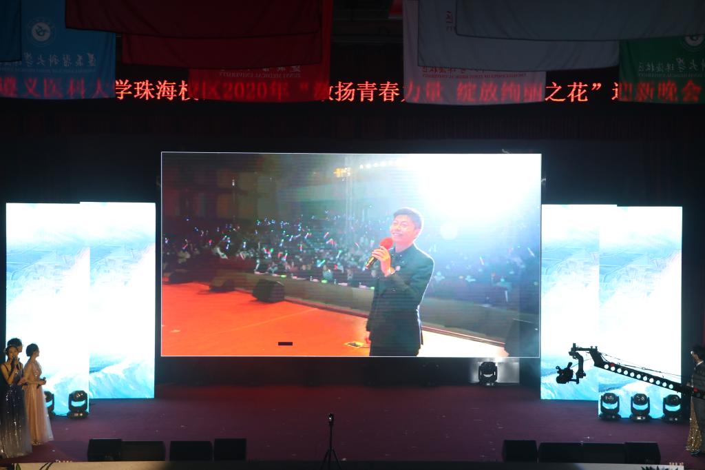 为激励新时代大学生担当作为、砥砺奋进,为实现中华民族伟大复兴的中国梦奉献青春力量,同时以最饱满的热情迎接2020级新生的到来,展示校区师生良好的精神风貌,积极营造健康向上的校园文化氛围,2020年11月27日晚7点由共青团遵义医科大学珠海校区文体委员会主办,珠海校区团委承办的以“激扬青春力量,绽放绚丽之花”为主题的遵义医科大学珠海校区2020年迎新晚会在校区大会堂隆重举行。