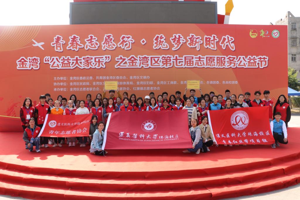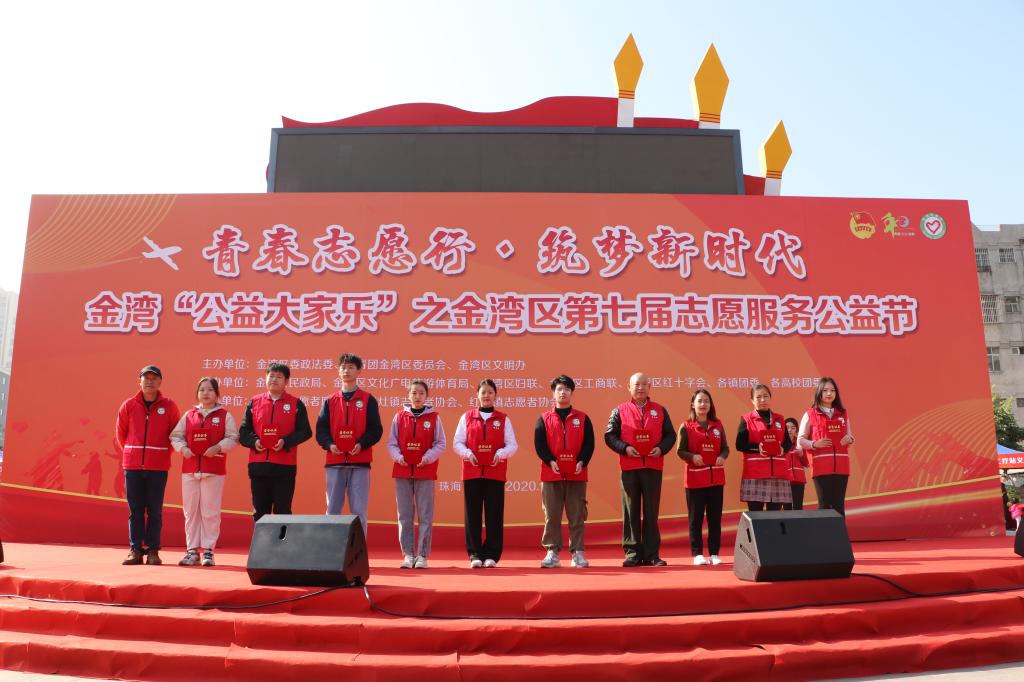 为深入学习贯彻习近平总书记关于志愿服务重要指示精神,大力弘扬“奉献、友爱、互助、进步”的志愿精神,传播志愿理念和公益文化,2020年12月5日上午9:30,由金湾区委政法委、团区委、区文明办主办,区民政局、区文化广电旅游体育局、区妇联、区工商联、区红十字会、各镇团委、各高校团委协办,区志愿者联合会、三灶镇志愿者协会、红旗镇志愿者协会承办的主题为“青春志愿行·筑梦新时代”的金湾“公益大家乐”之金湾区第七届志愿服务公益节在红旗文化广场成功举办。各组织相关负责人、志愿服务队、优秀组织和志愿者约300人参加本次活动,校区学子代表参与本次活动。